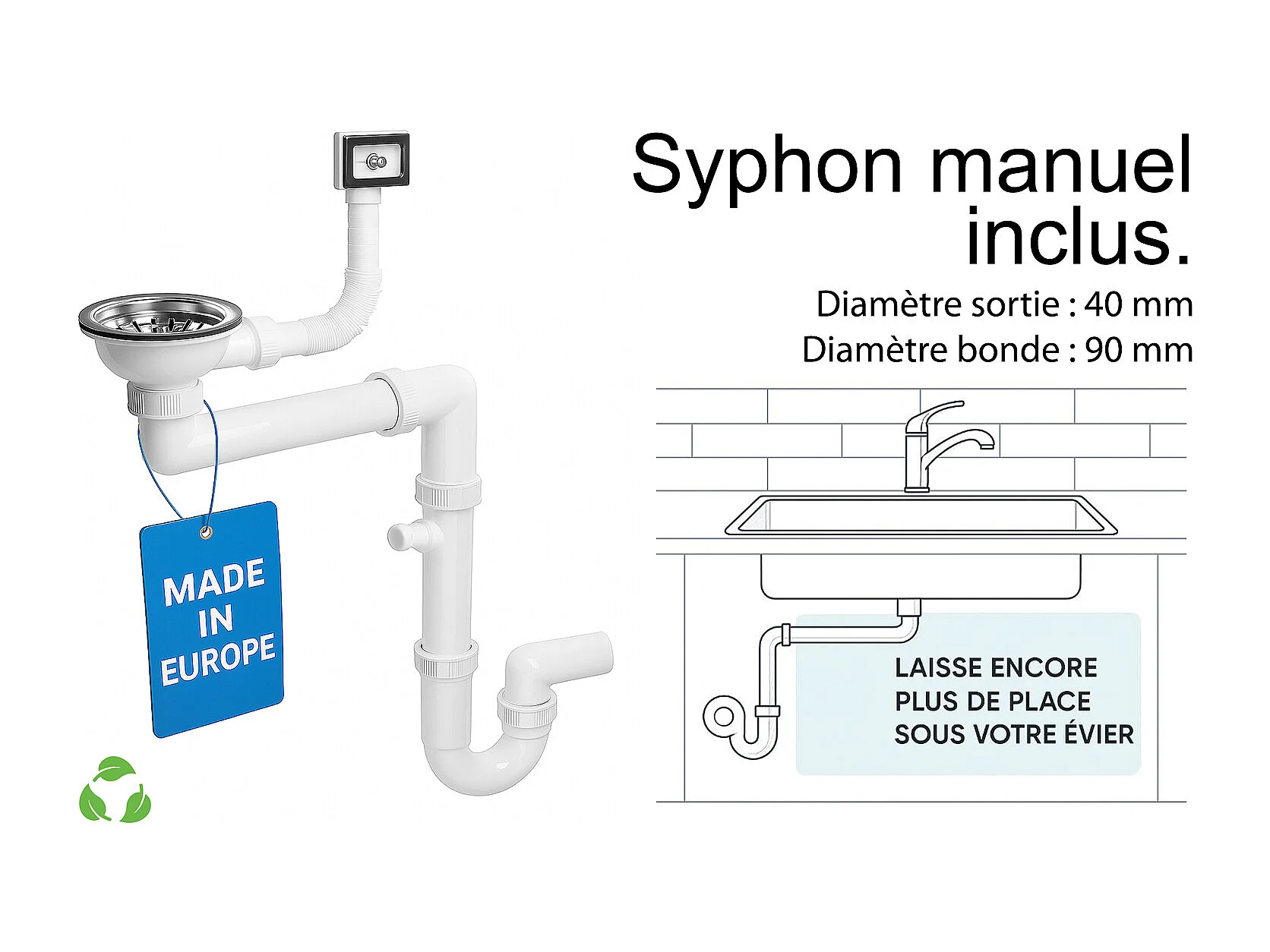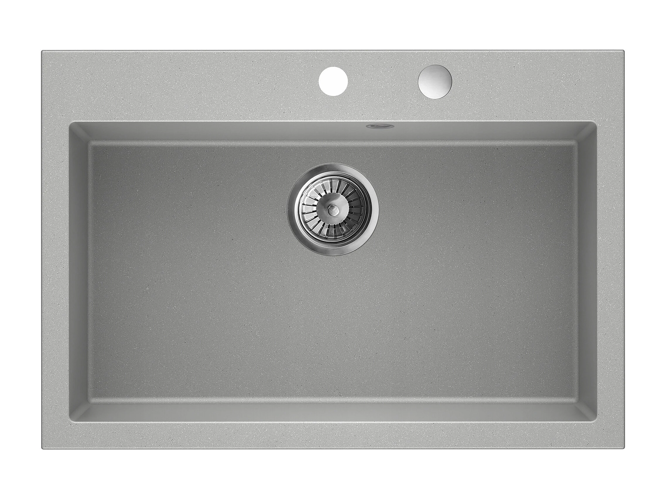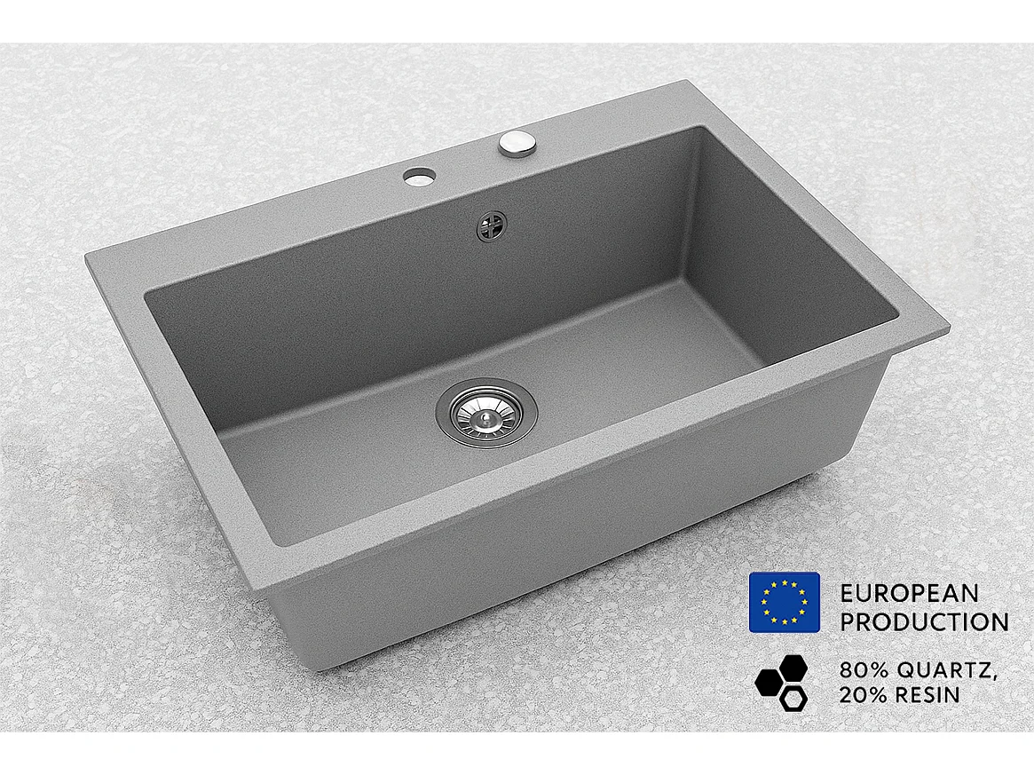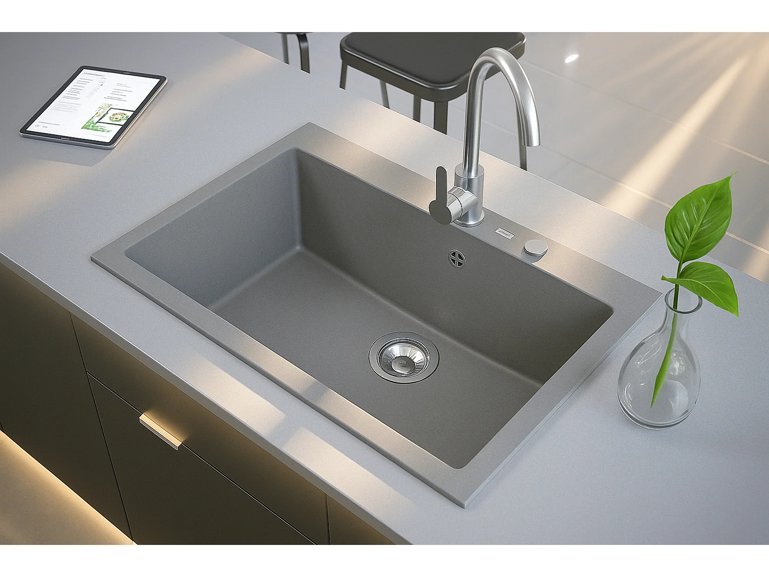 Grand évier ASOIZE GRIS en granit premium - 1 Bac sans égouttoir et vidage inclus