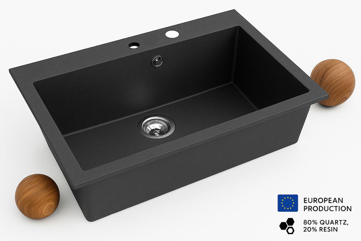 Grand évier ASOIZE NOIR en granit premium - 1 Bac sans égouttoir et vidage inclus