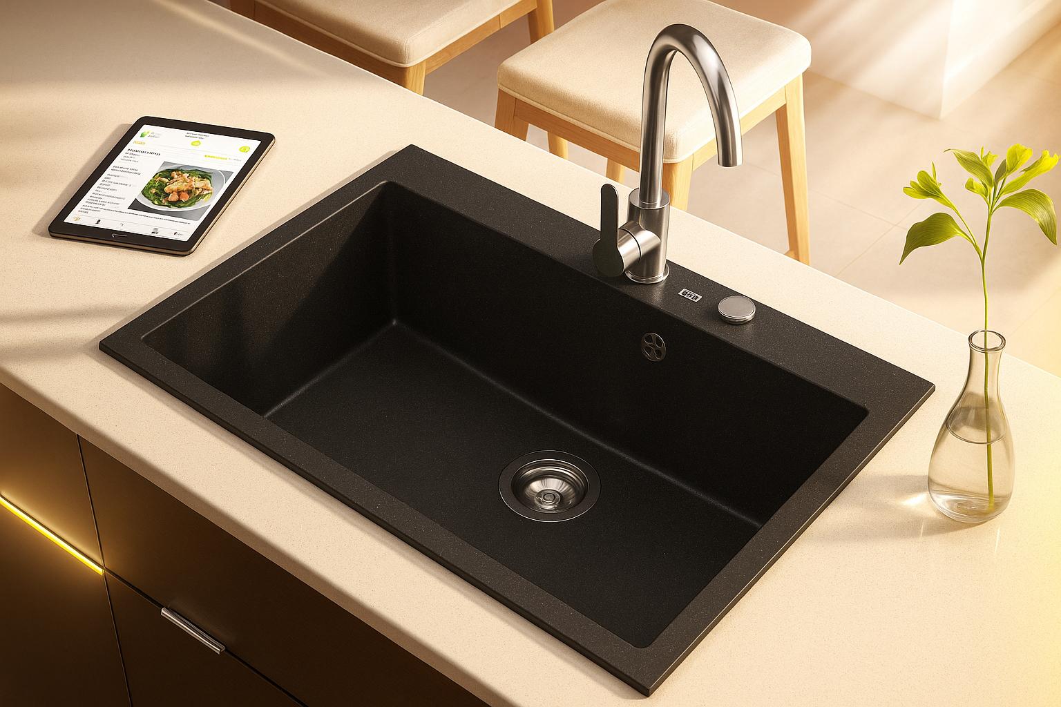 ÉVIER DE CUISINE NOIR EN GRANIT ALOR SIPHON
