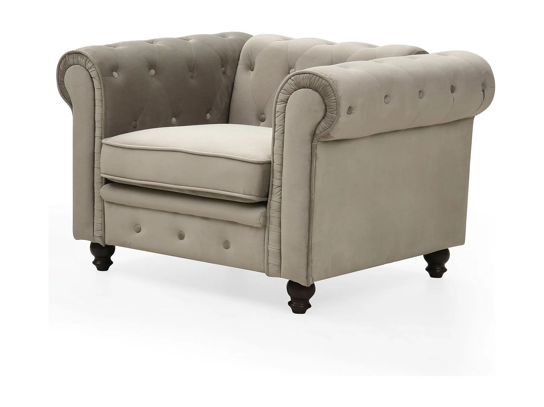 Fauteuil Design Velours "Chesterfield" 111cm Taupe