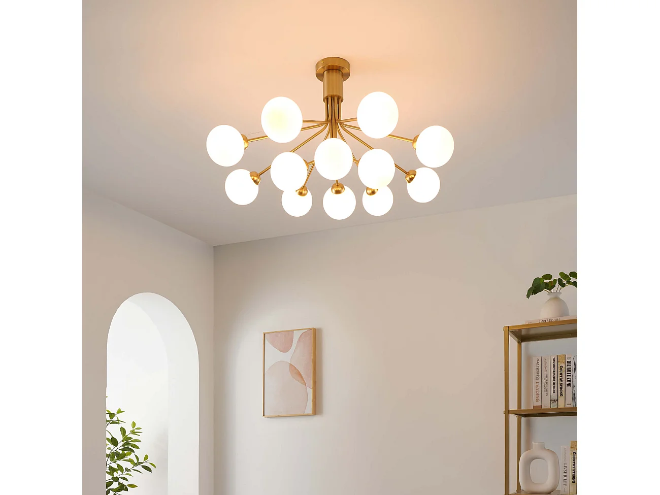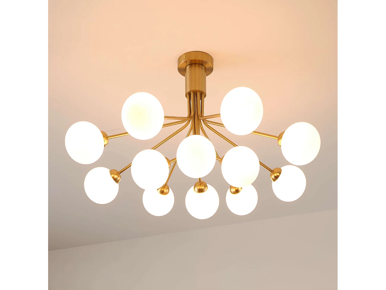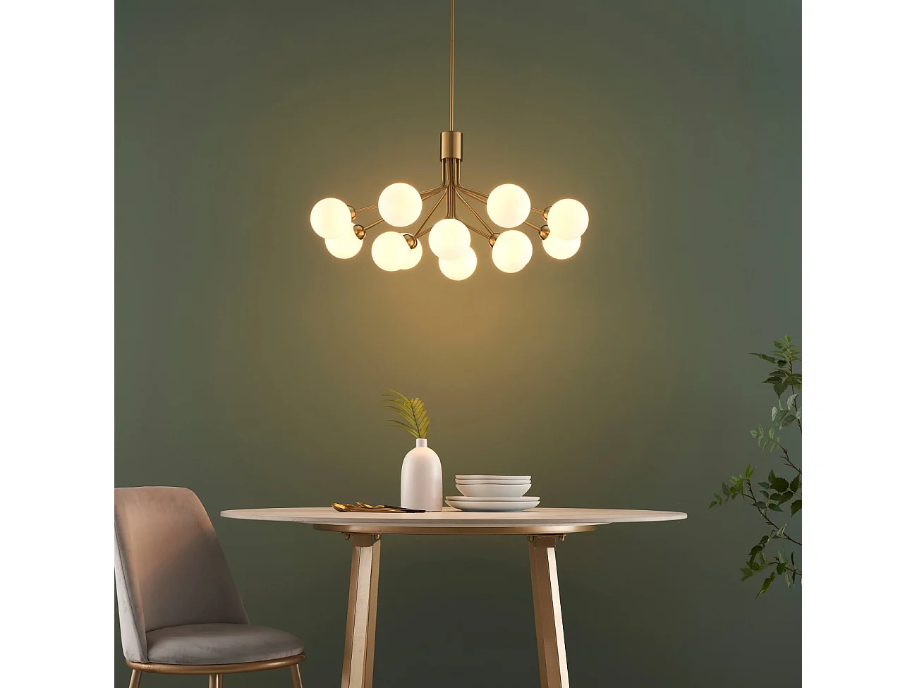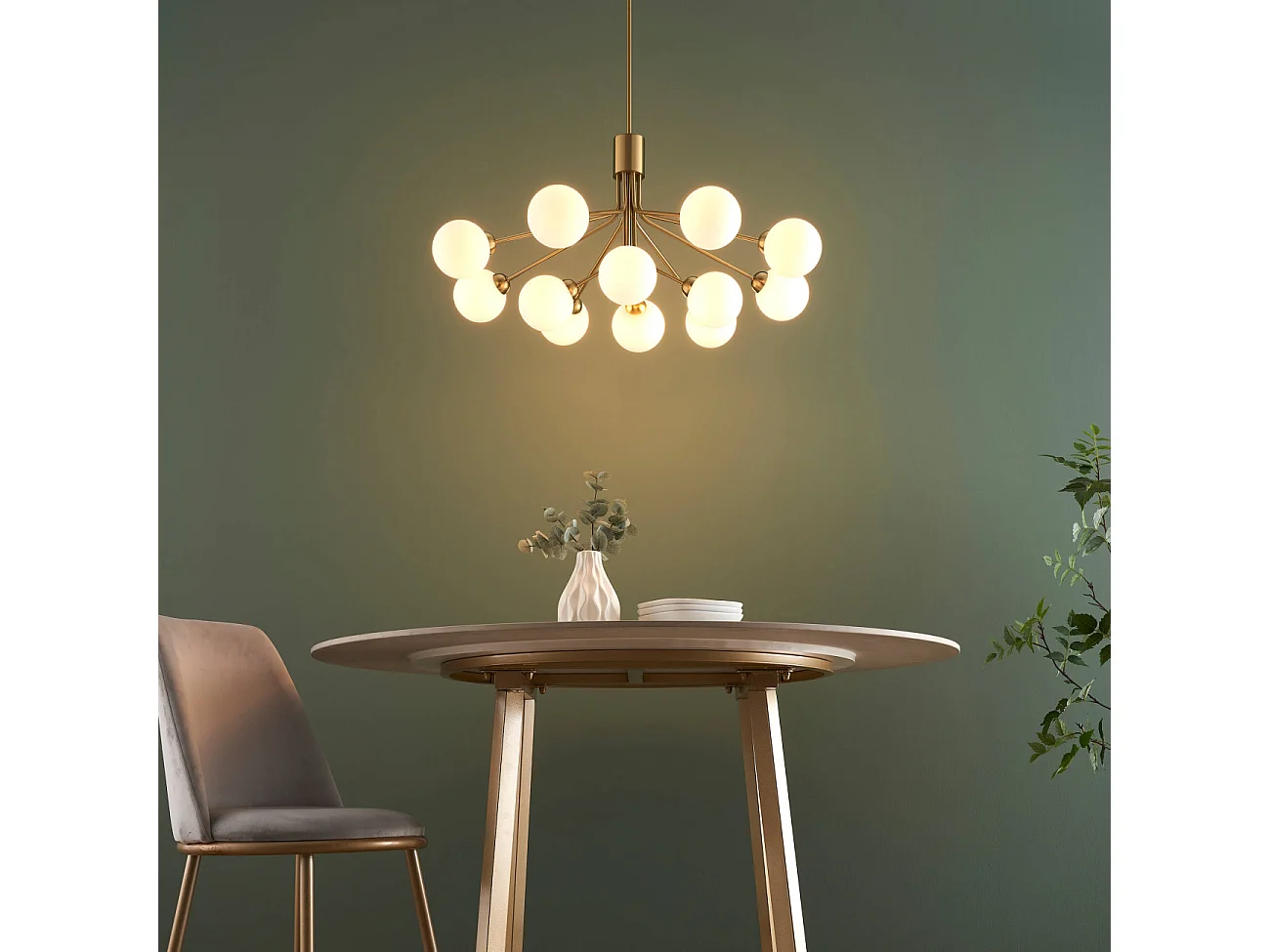 Grand lustre élégant laiton à 12 boules - Audrey