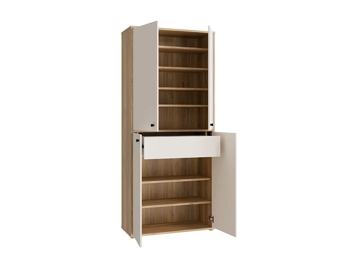 Grand meuble à chaussures H. 191 cm décor bois de chêne et sable - TIAGO