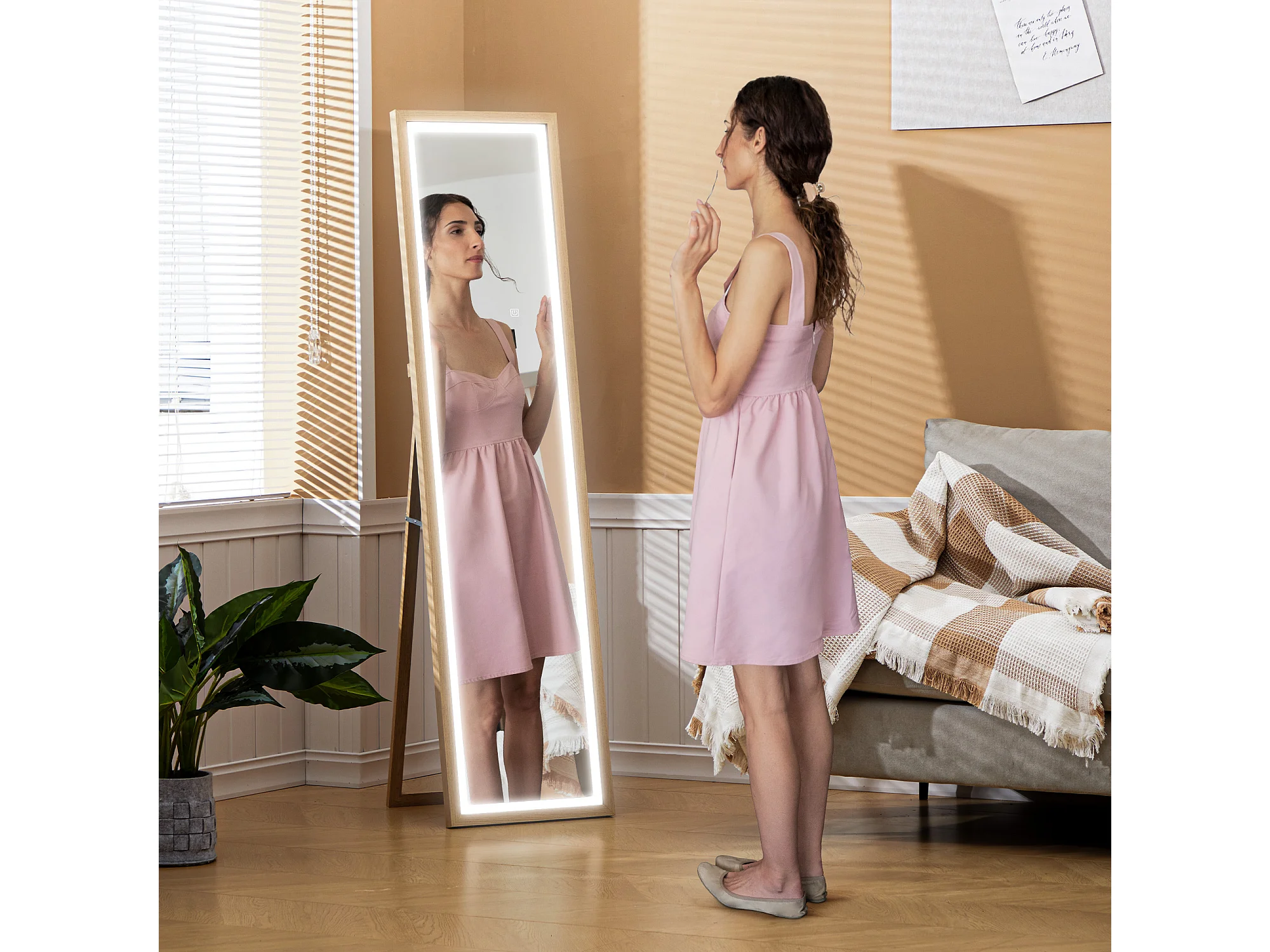 Grand miroir LED pleine longueur 40 x 160 cm autoportant ou à fixer - 3 couleurs luminosité réglable - effet bois