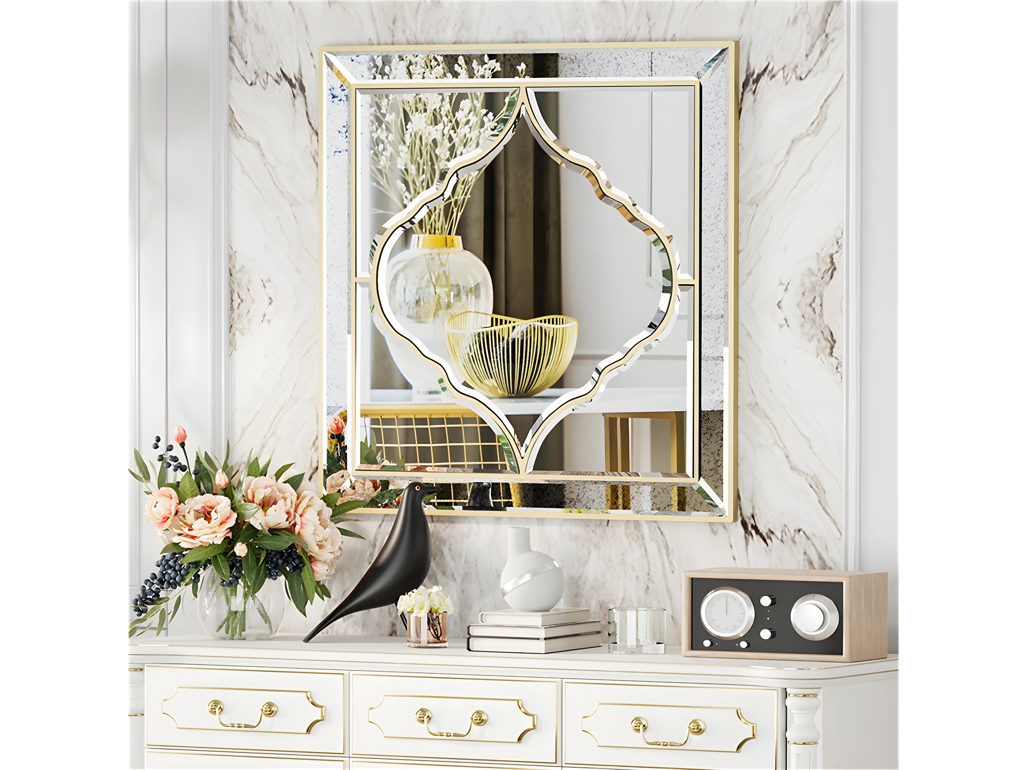 Grand miroir mural déco miroir murale décoration pour salon entrée miroirs muraux décoratif design 80x80cm