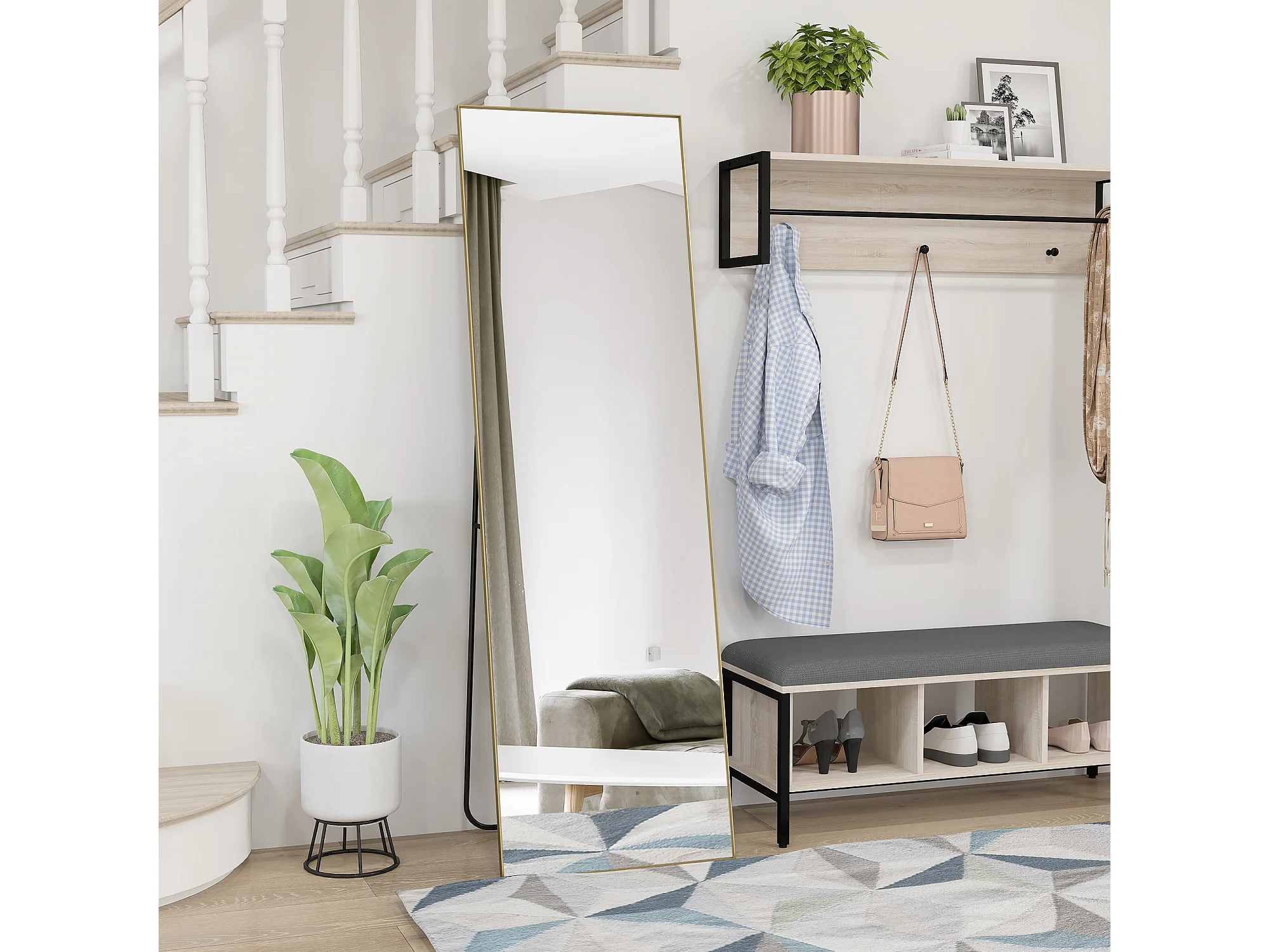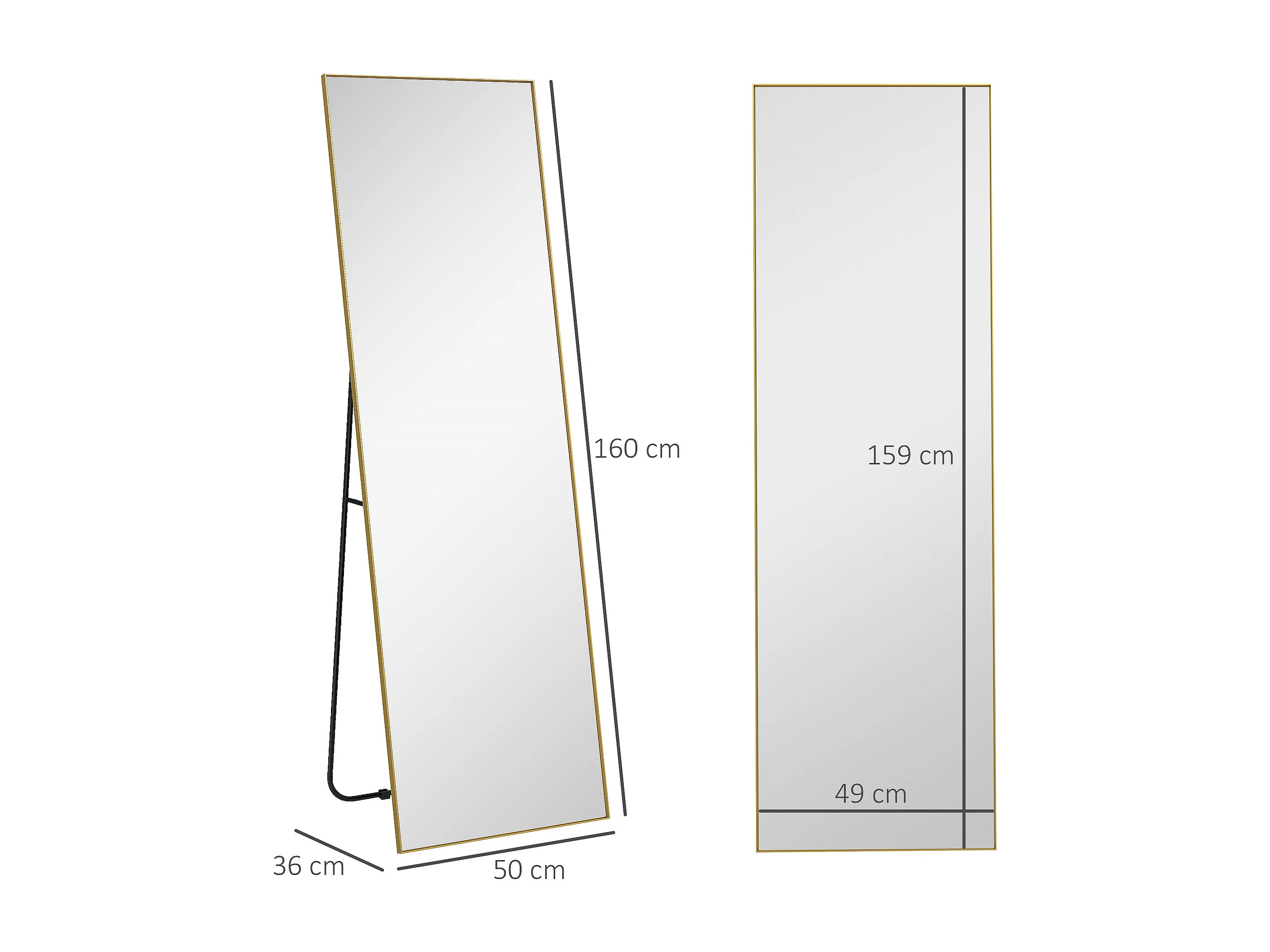 Grand miroir pleine longueur rectangulaire 50 x 160 cm - miroir sur pied ou mural - doré