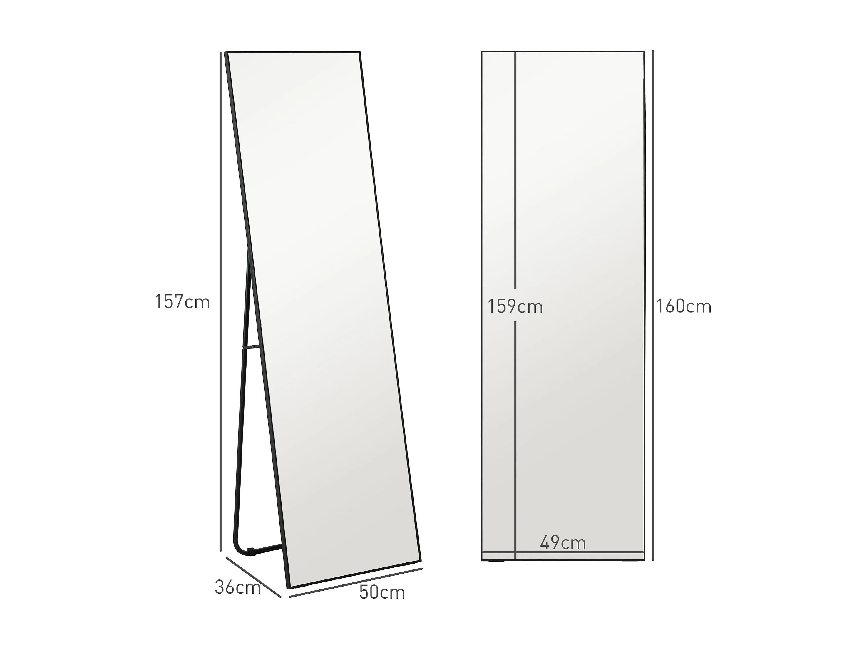 Grand miroir pleine longueur rectangulaire 50 x 160 cm - miroir sur pied ou mural - noir