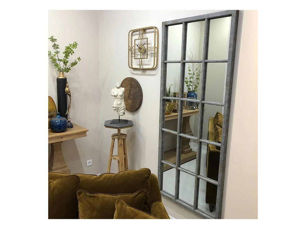 Grand miroir rectangulaire fenêtre Bois Argent - Les Miroirs D'Interior'S Interior's