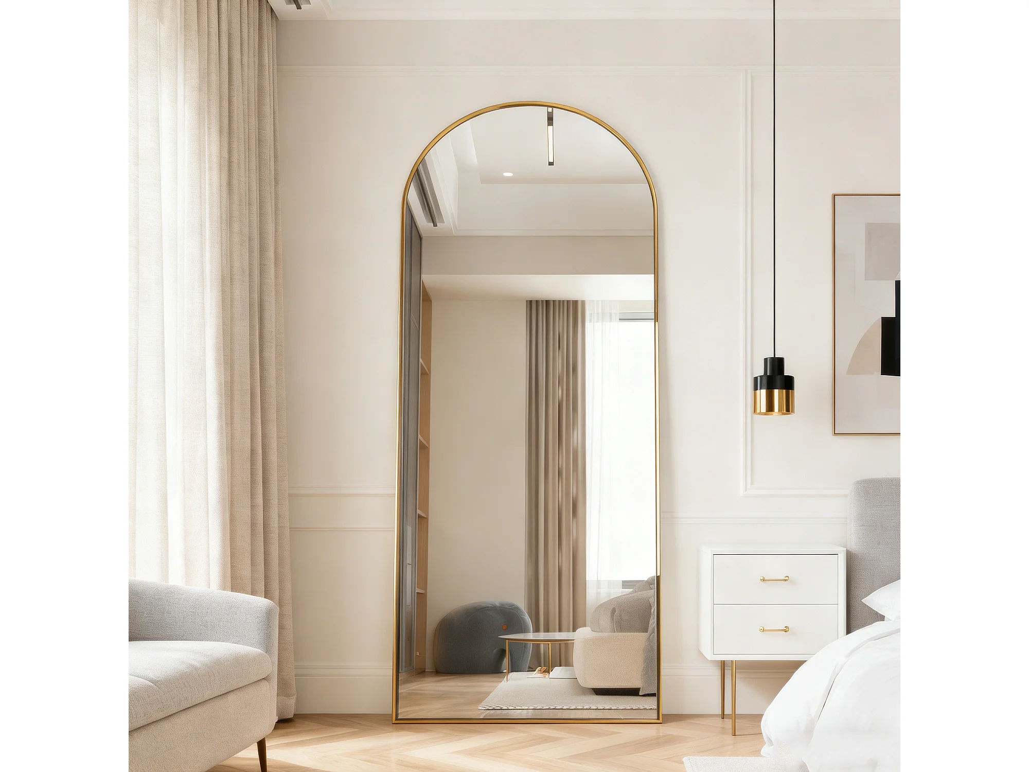 Grand miroir sur Pied arqué, Miroir mural cadre en métal et verre trempé, miroir Plein Corps Polyvalent, 80Lx180H cm, doré