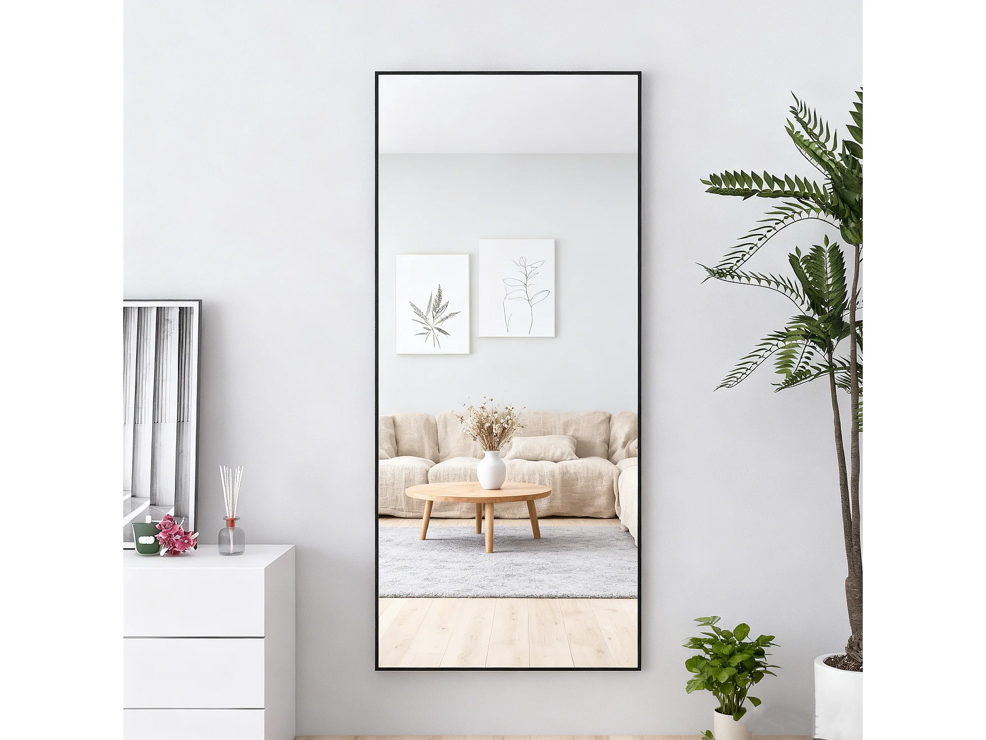 Grand miroir sur pied et mural, rectangulaire plein corps en verre trempé, Miroir Plein Corps Polyvalent pour salon et à la chambre, 80Lx180H cm, noir