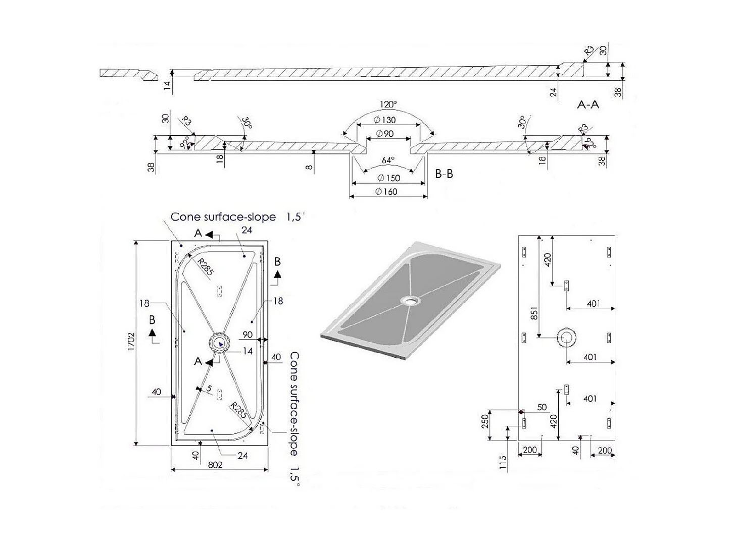 Grand Receveur De Douche En Résine 80X170 Au Ras Du Sol | Klio
