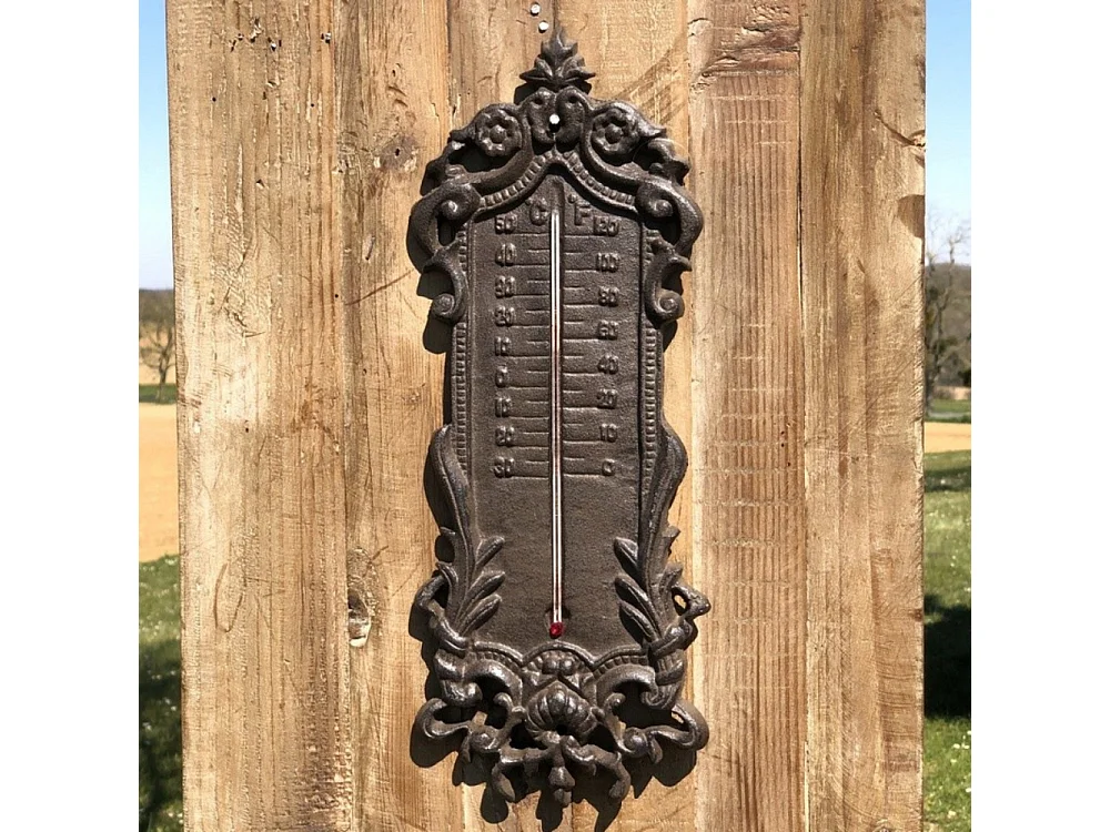 Grand thermomètre extérieur décoratif vintage fonte marron 37cm