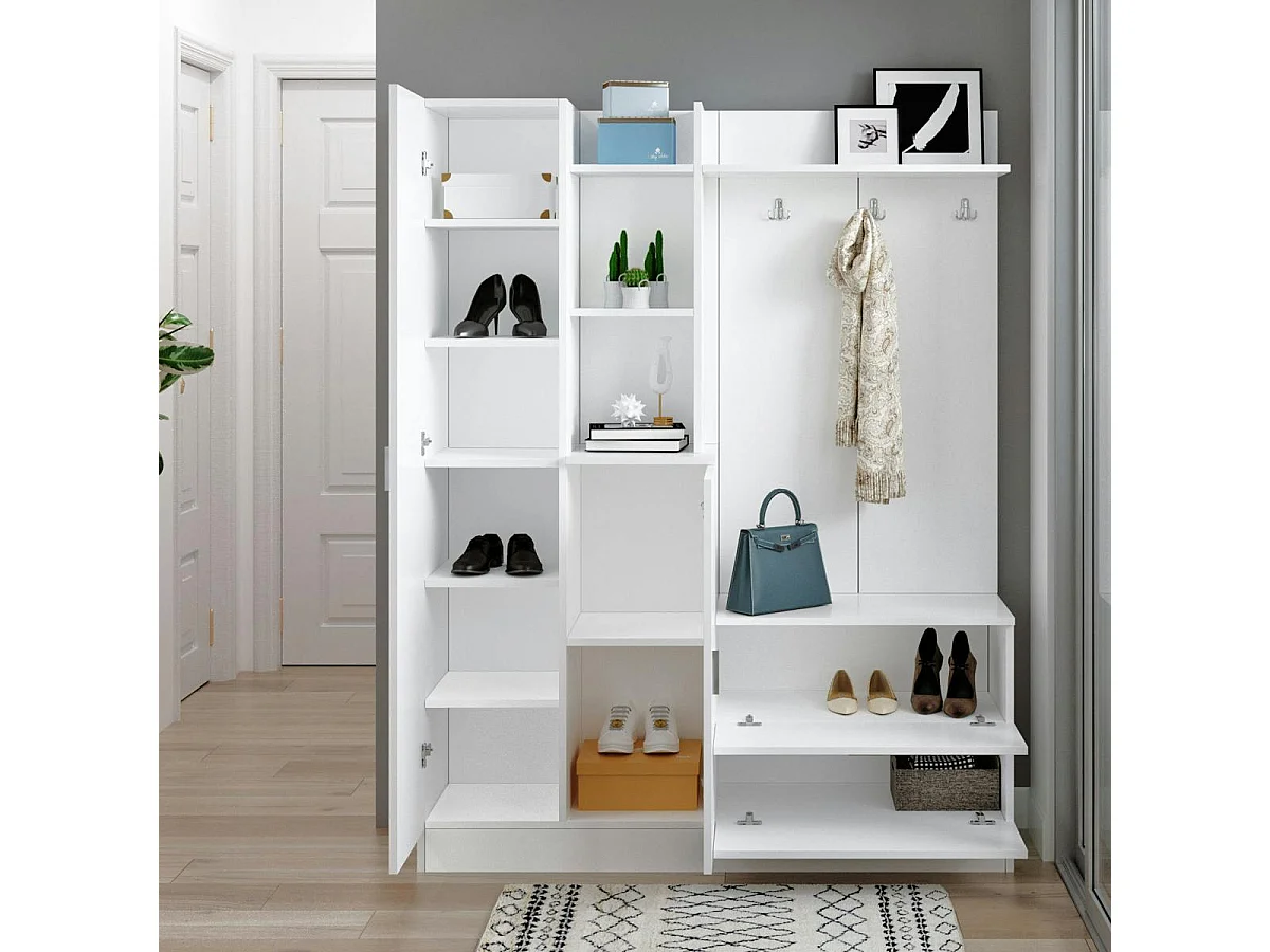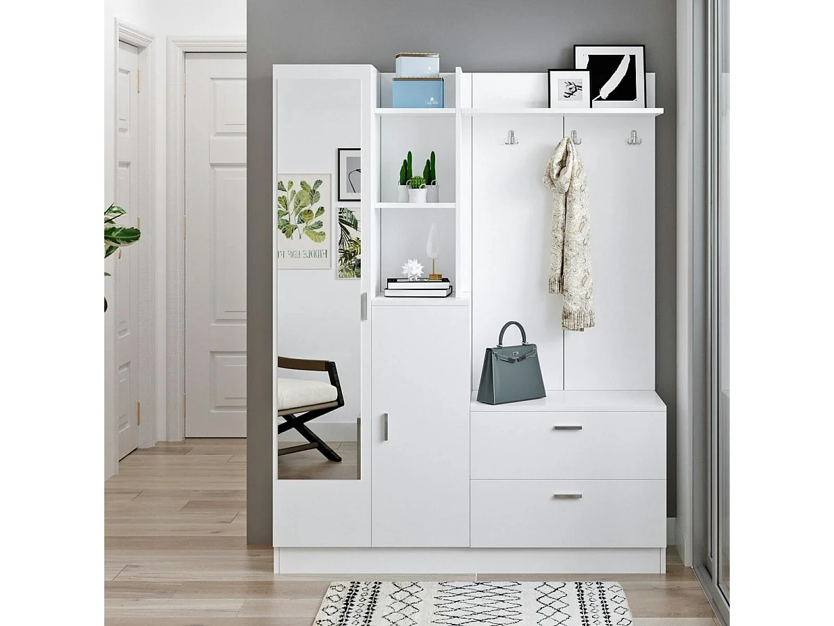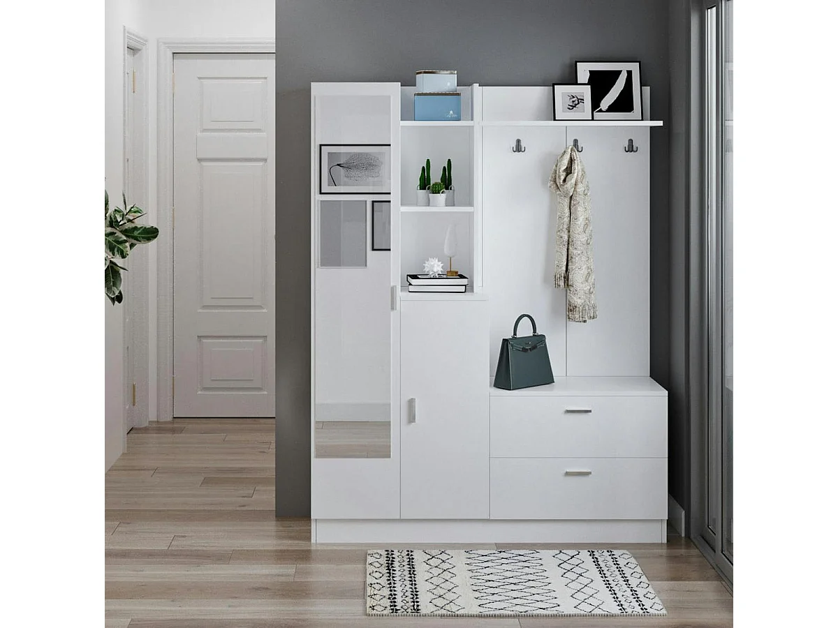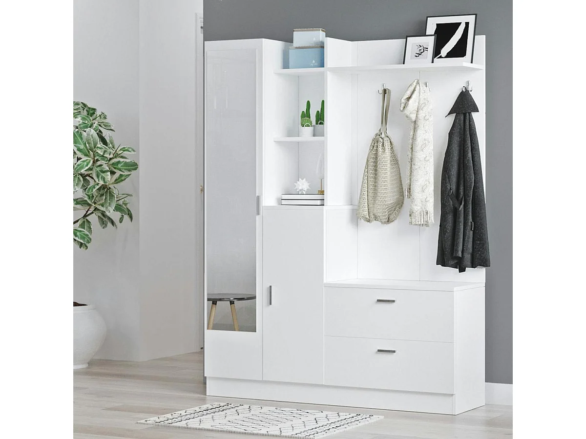 Grand vestiaire d’entrée blanc 4 portes 1 miroir JENA