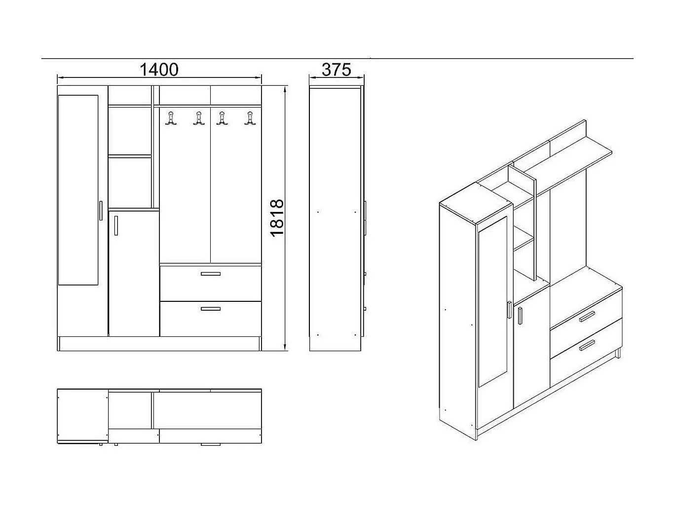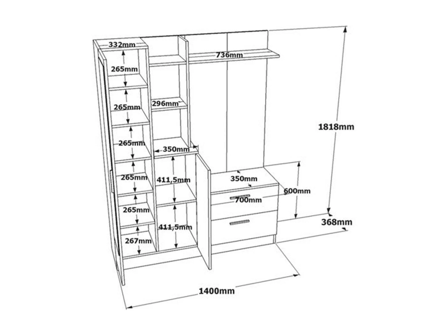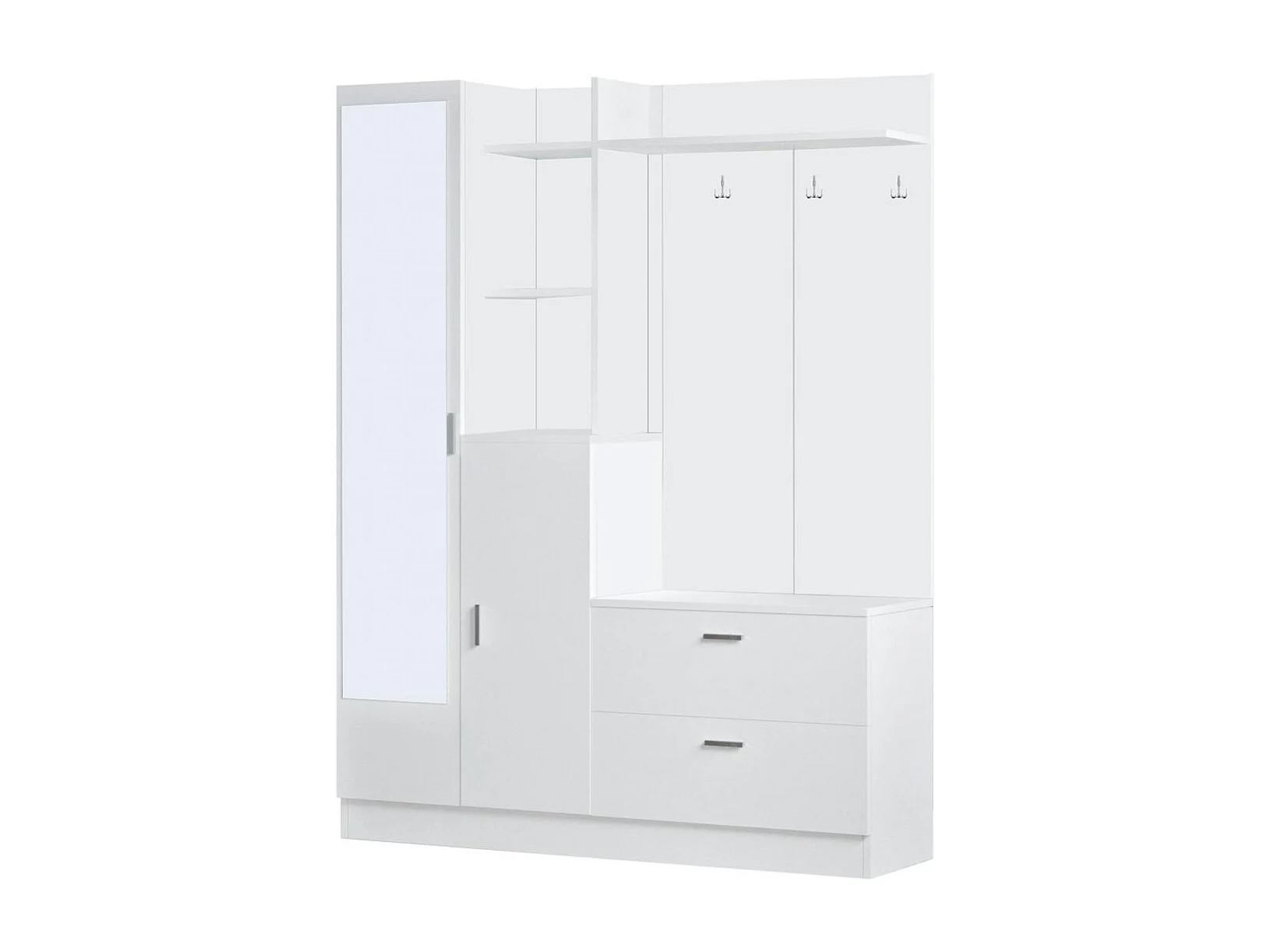 Grand vestiaire d’entrée blanc 4 portes 1 miroir JENA