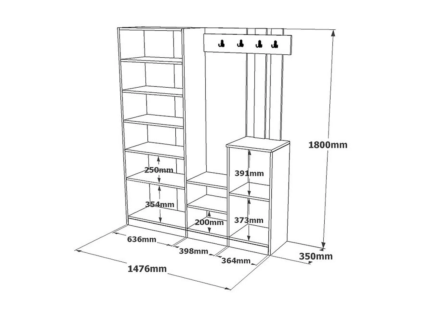 Grand vestiaire d'entrée décor gris et bois 1 miroir JENA