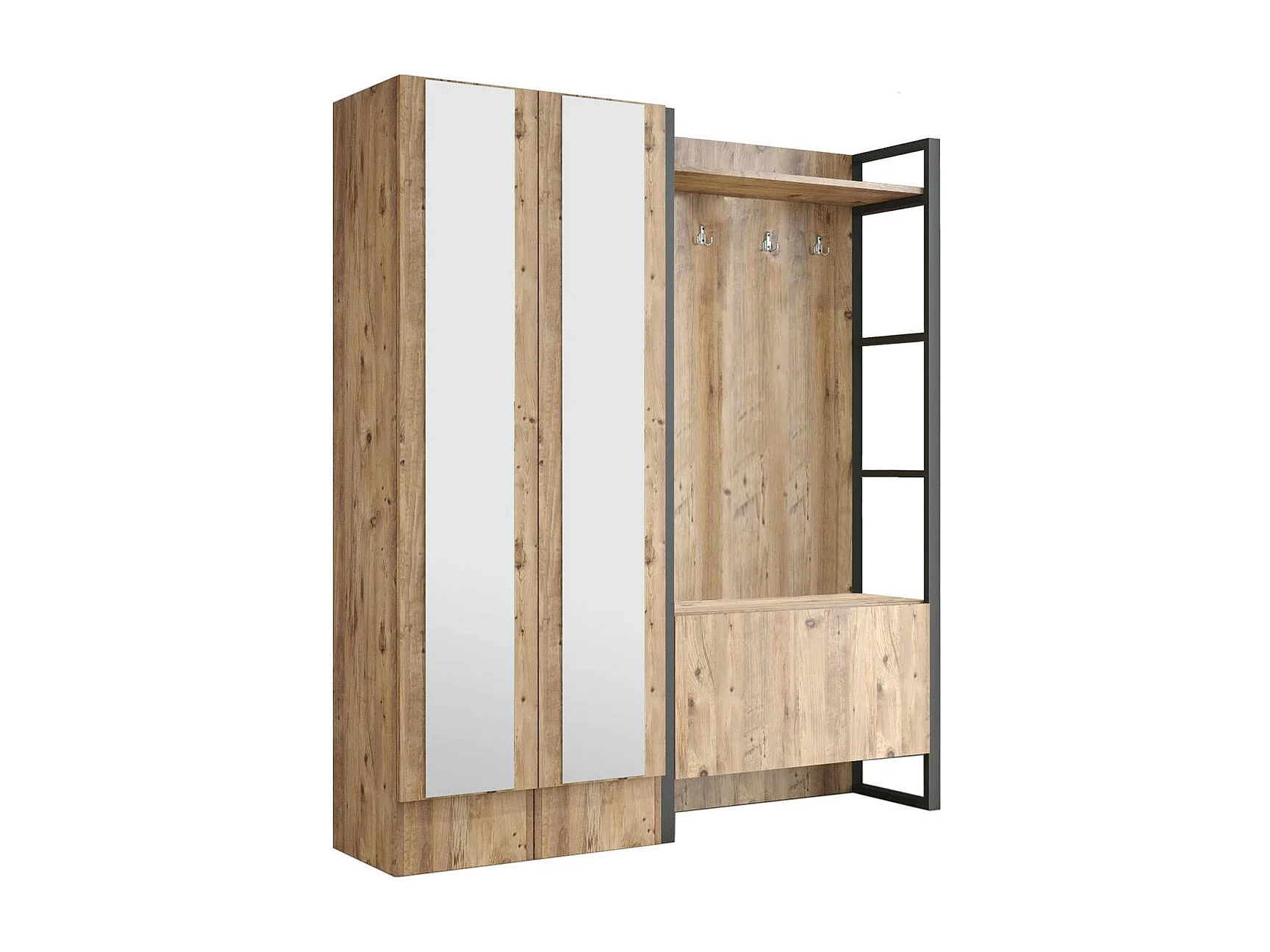 Grand vestiaire d'entrée rustique 3 portes 2 miroirs JENA