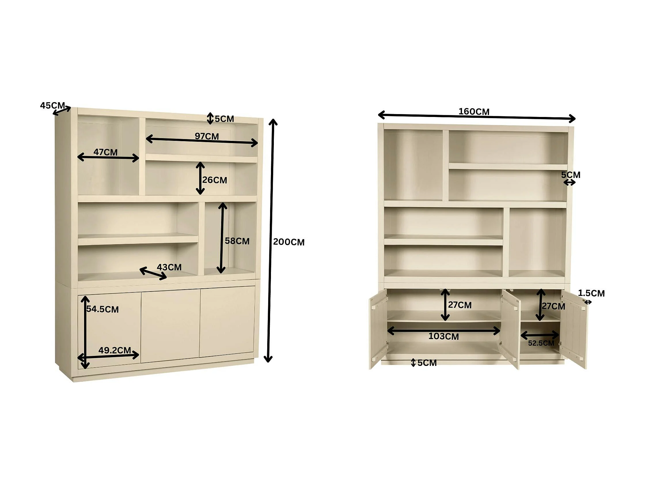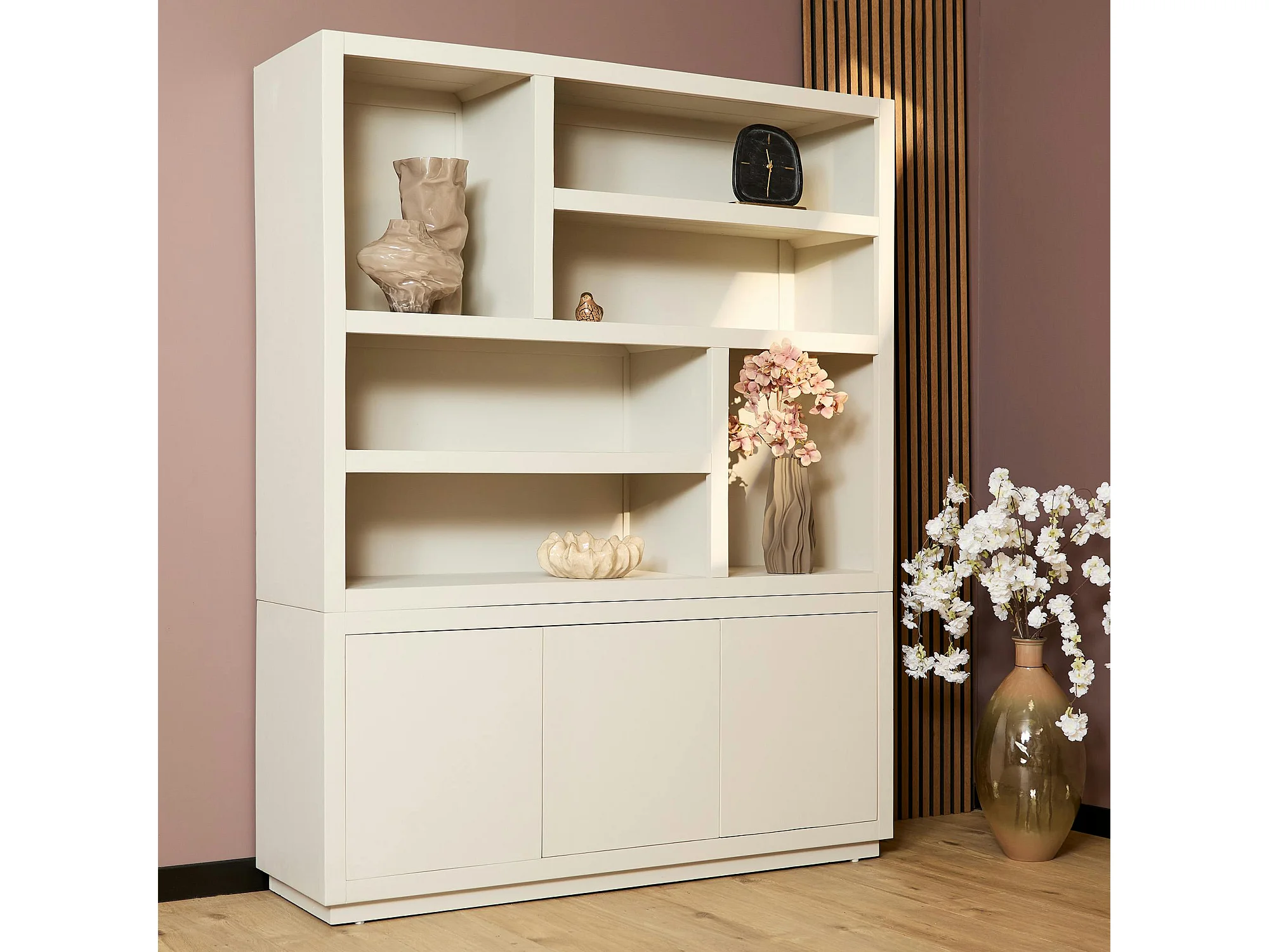 Grande bibliothèque bois sable style minimaliste MONTARO