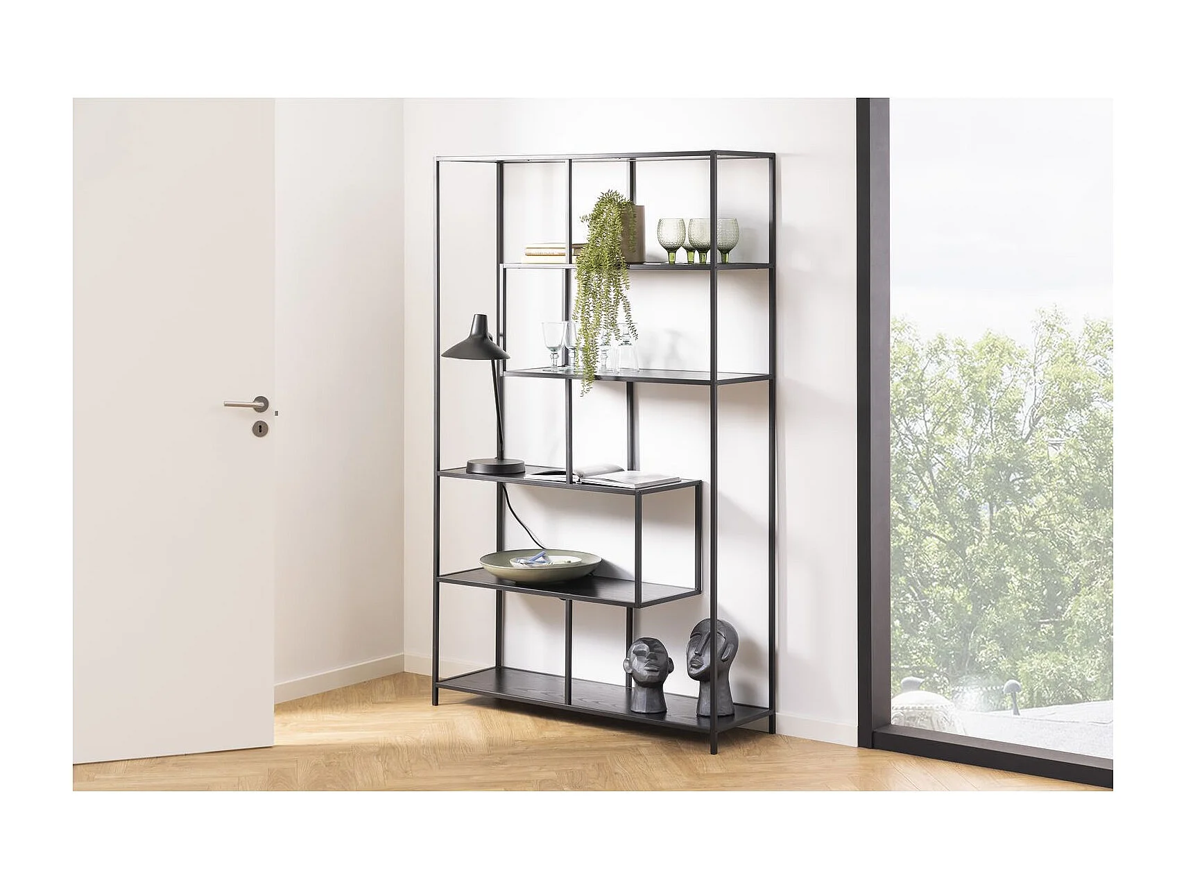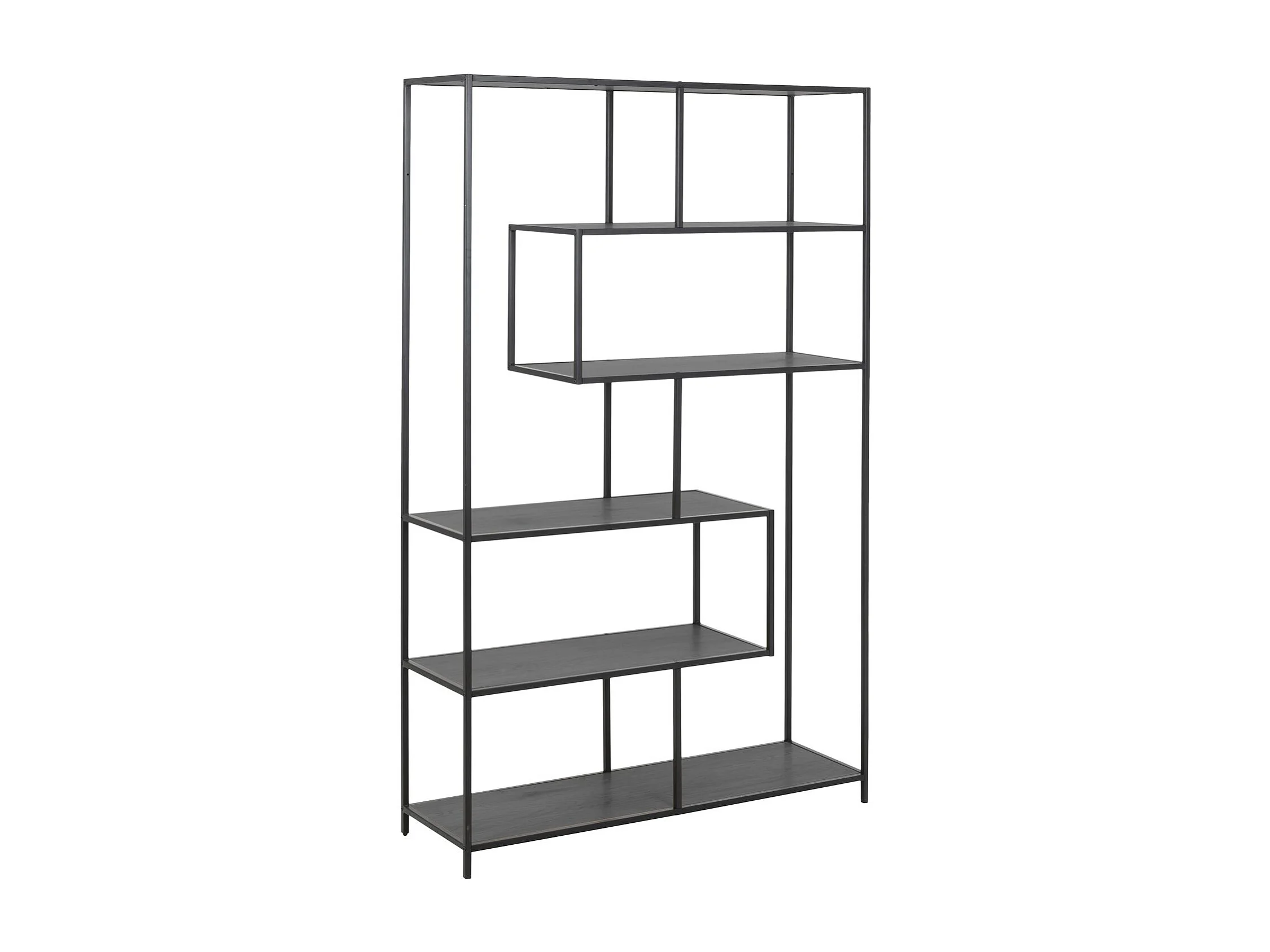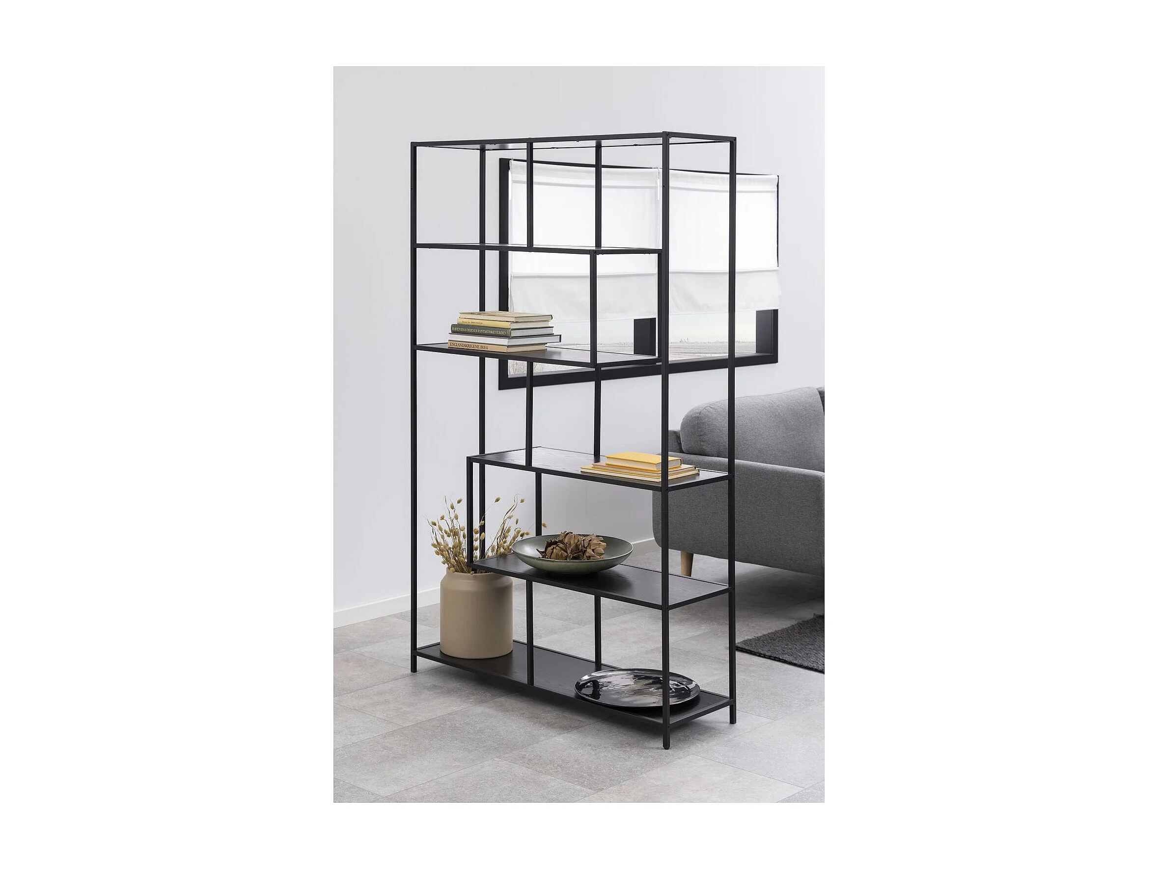 Grande Bibliothèque haute 5 étagères asymétriques en MDF et métal - Noir