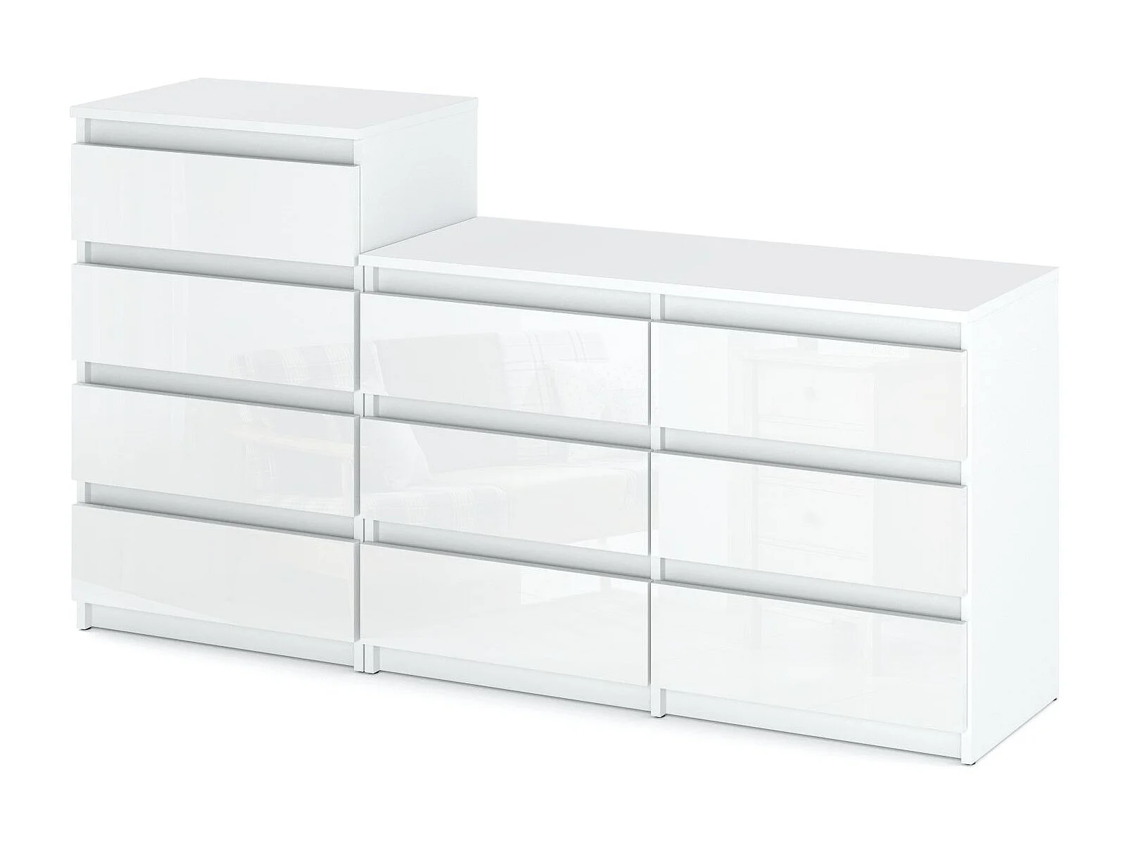 Grande commode avec 10 tiroirs Blanc Brillant 160 cm – meuble TV, buffet, armoire pour salon