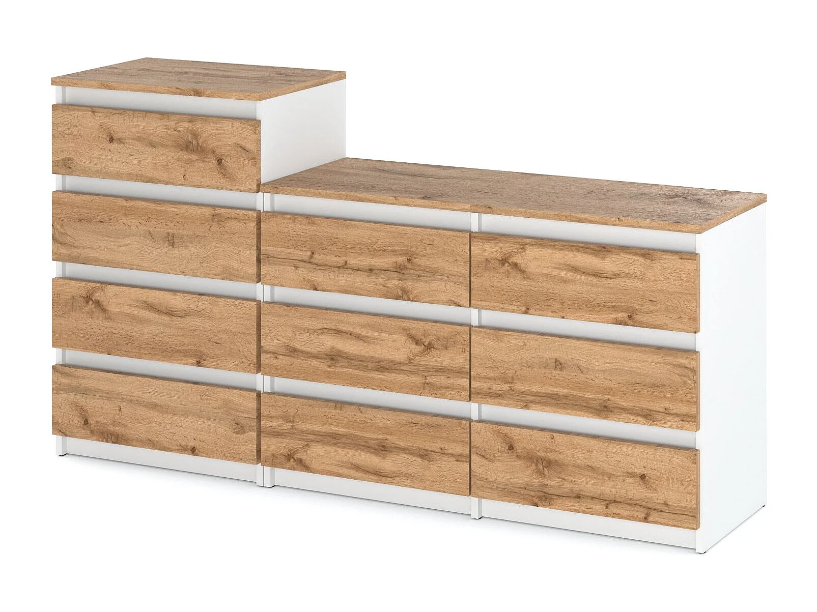 Grande commode avec 10 tiroirs Blanc + Chêne Wotan 160 cm – meuble TV, buffet, armoire pour salon
