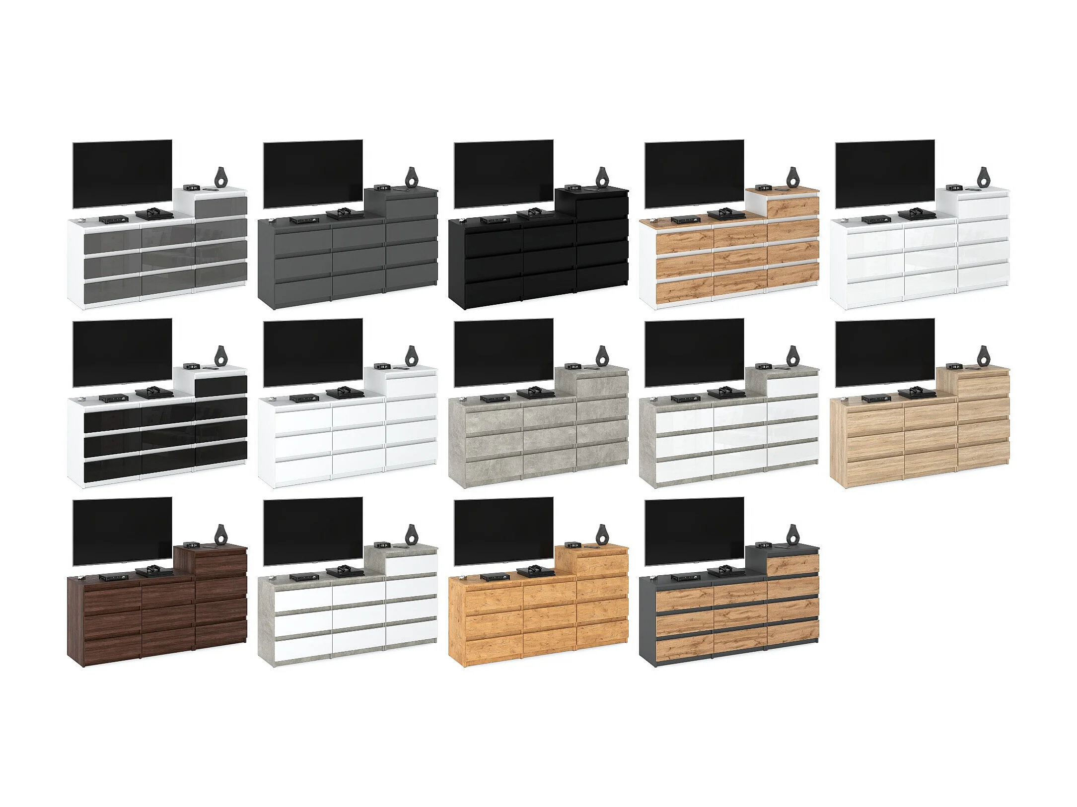 Grande commode avec 10 tiroirs Chêne Sonoma + Blanc 160 cm – meuble TV, buffet, armoire pour salon