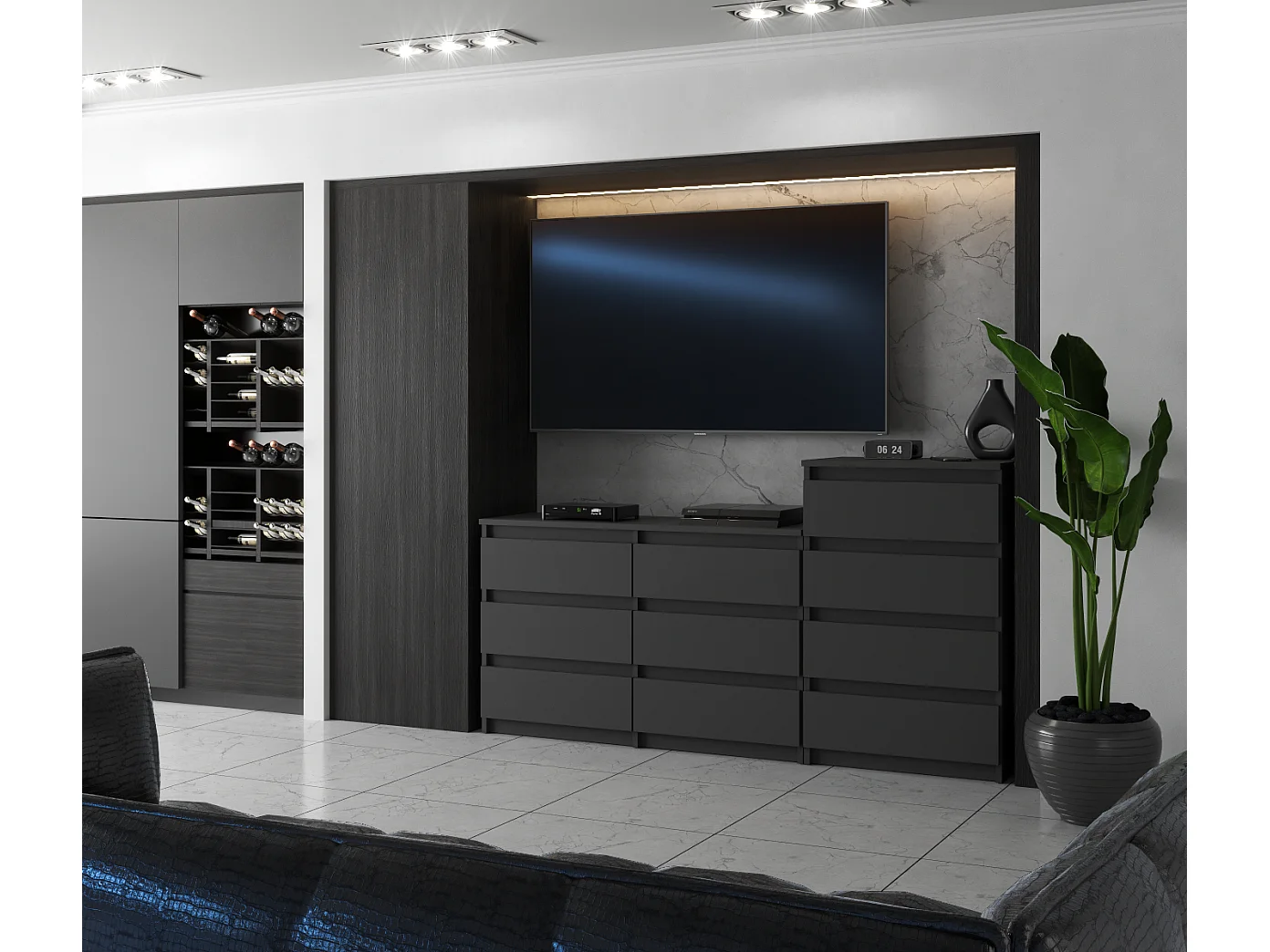 Grande commode avec 10 tiroirs Gris 160 cm – meuble TV, buffet, armoire pour salon