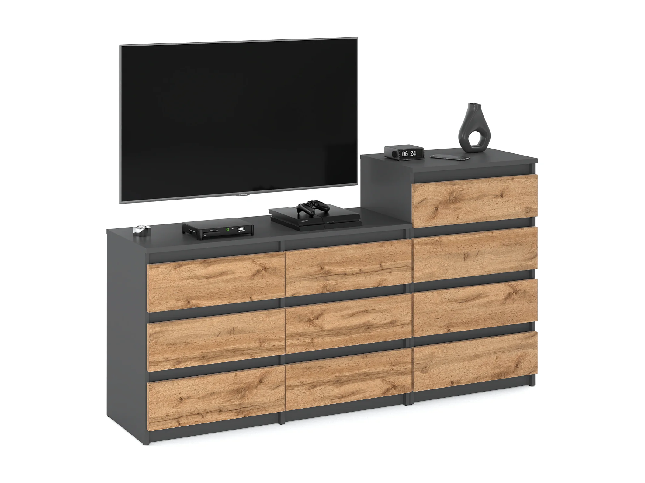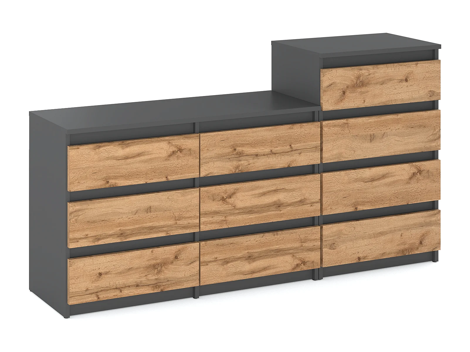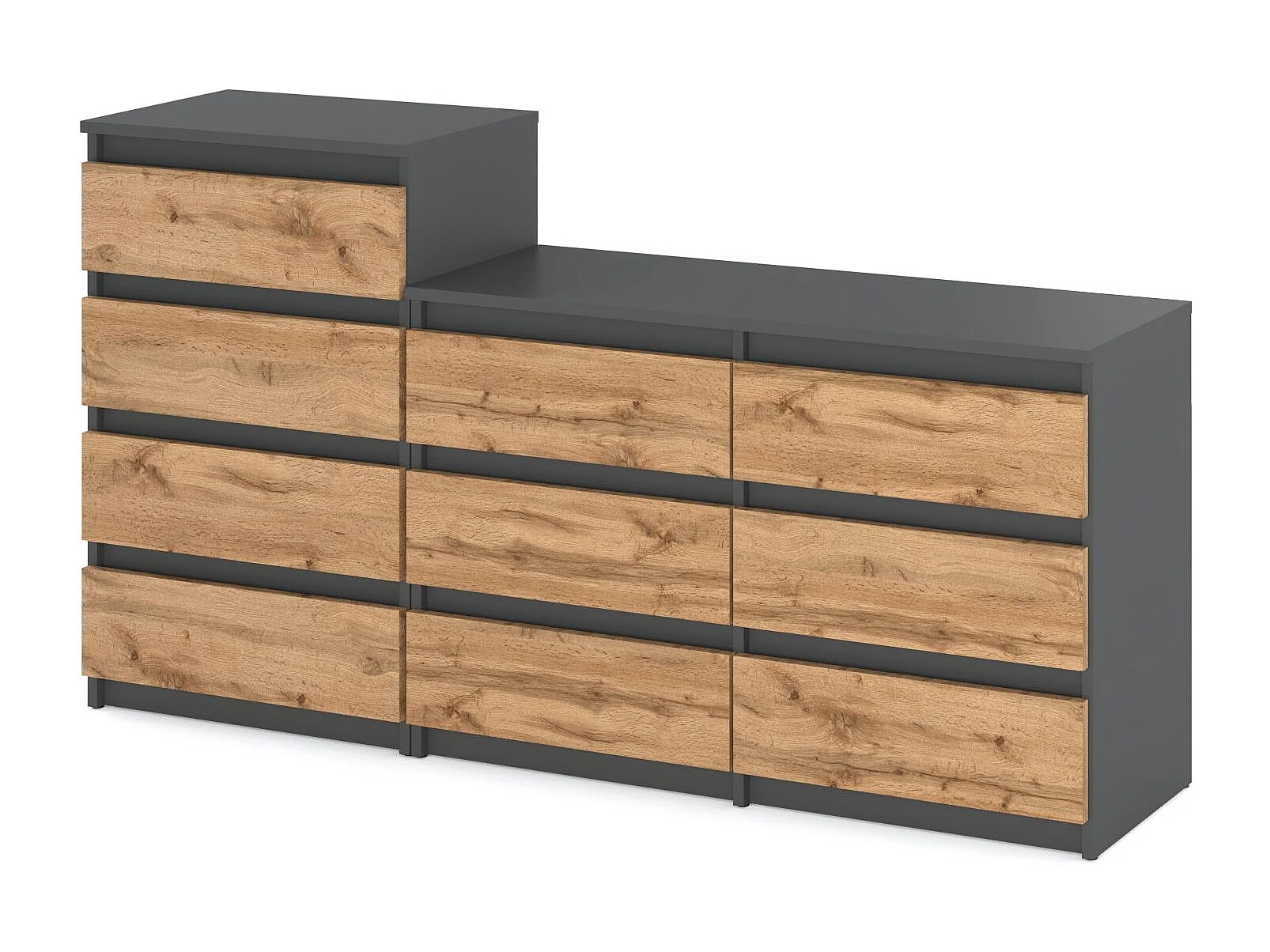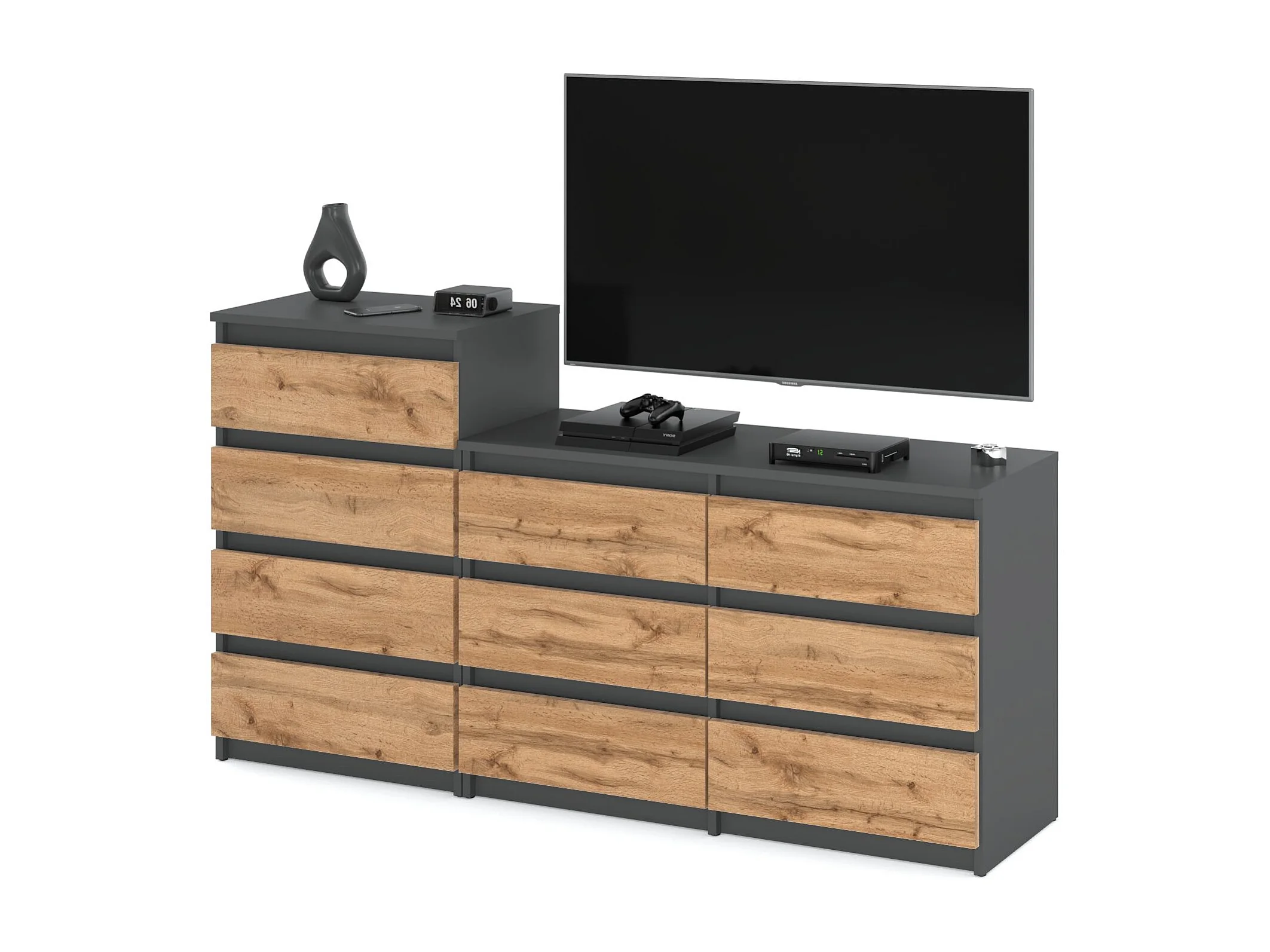 Grande commode avec 10 tiroirs Gris+ Chêne Wotan 160 cm – meuble TV, buffet, armoire pour salon