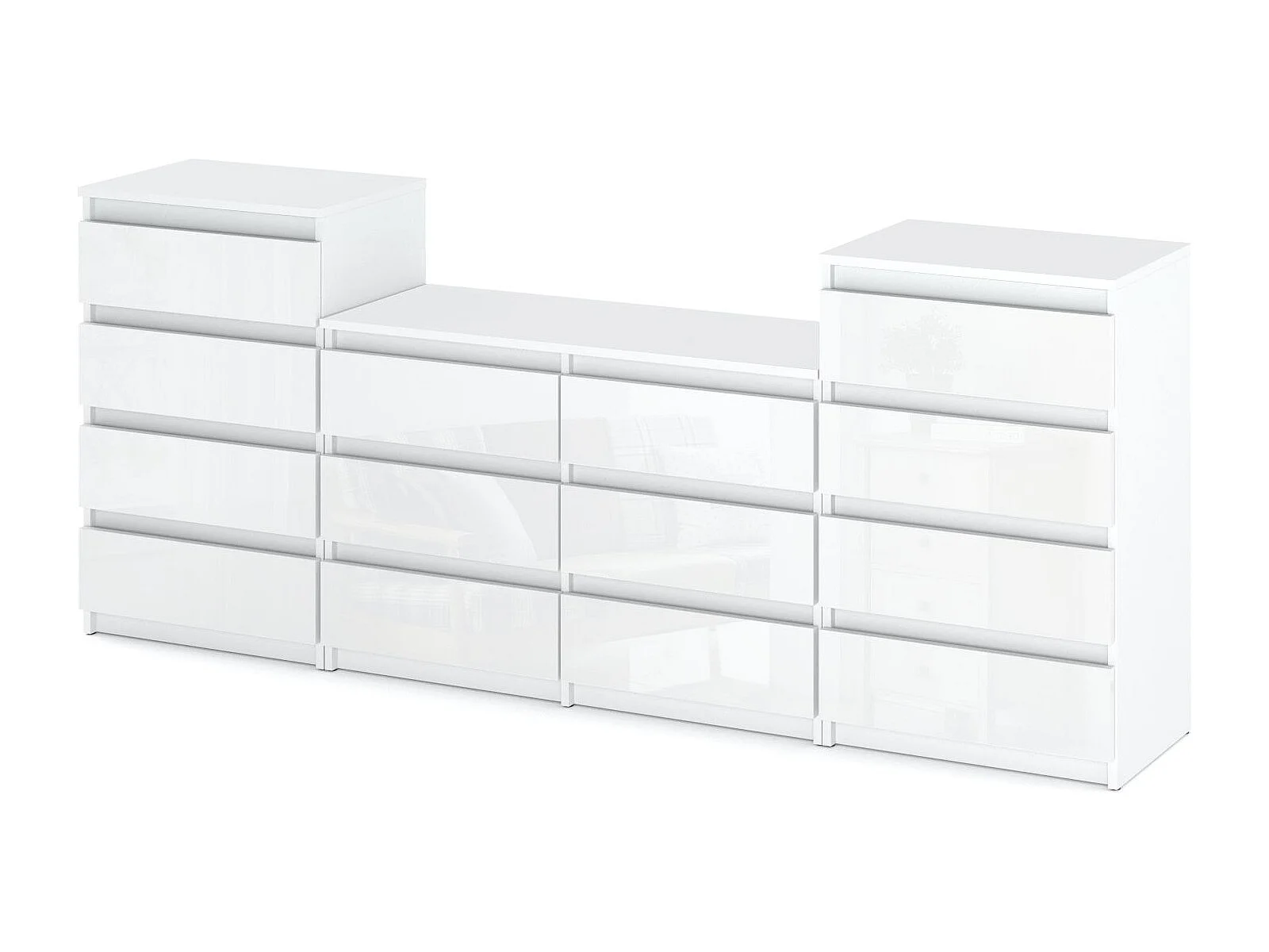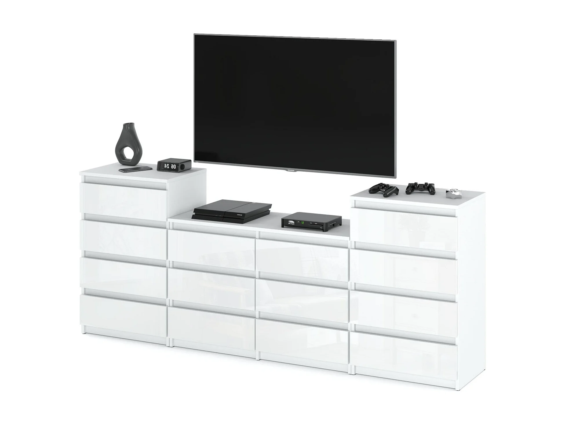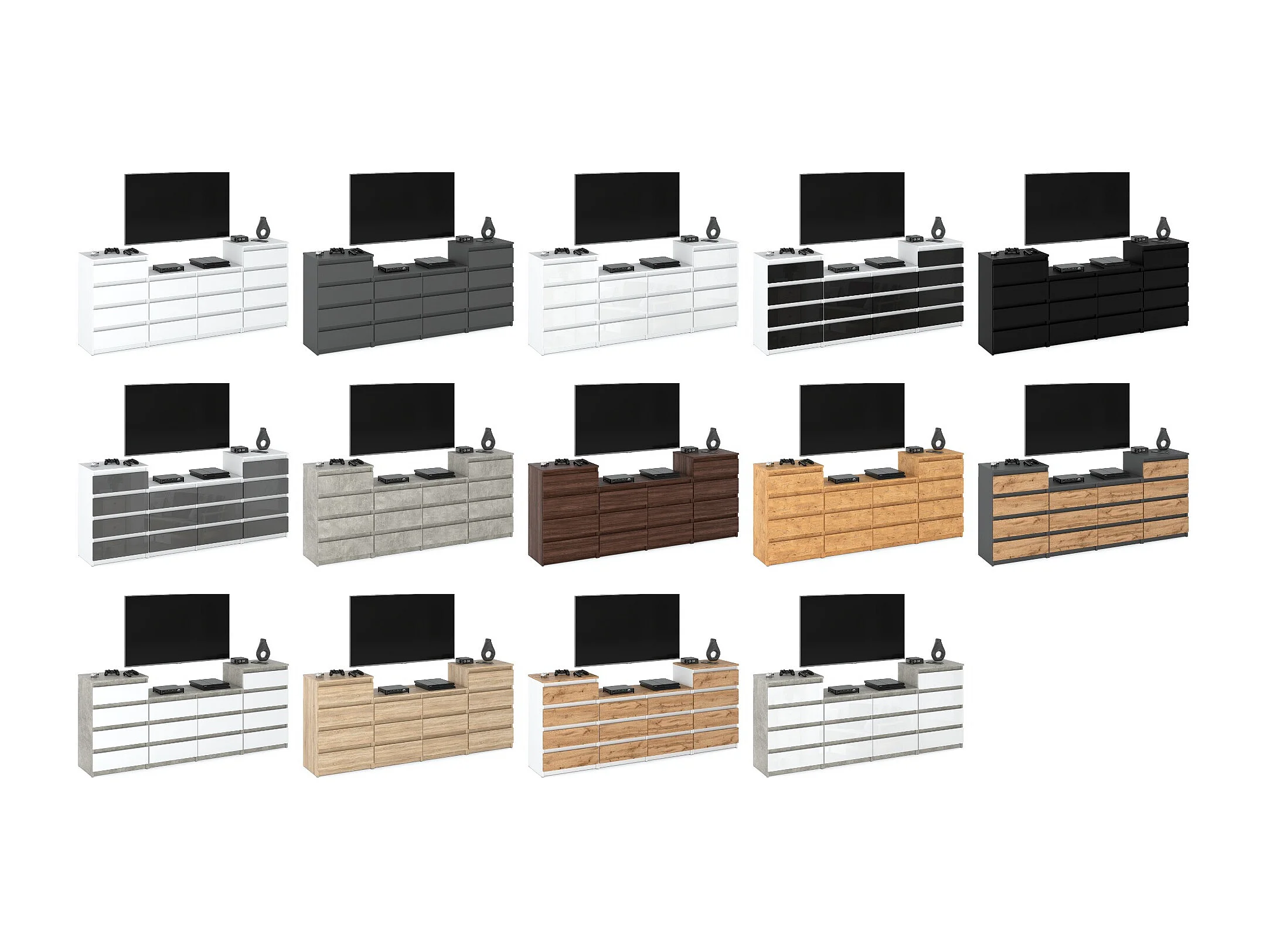 Grande commode avec 14 tiroirs Blanc Brillant 220 cm – meuble TV, buffet, armoire pour salon
