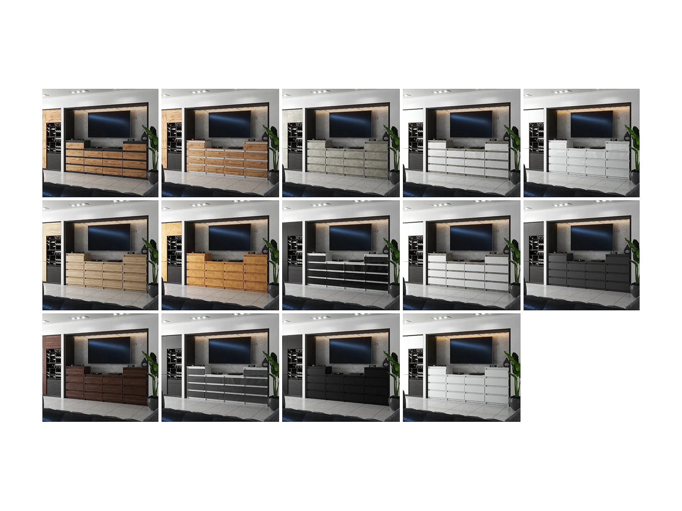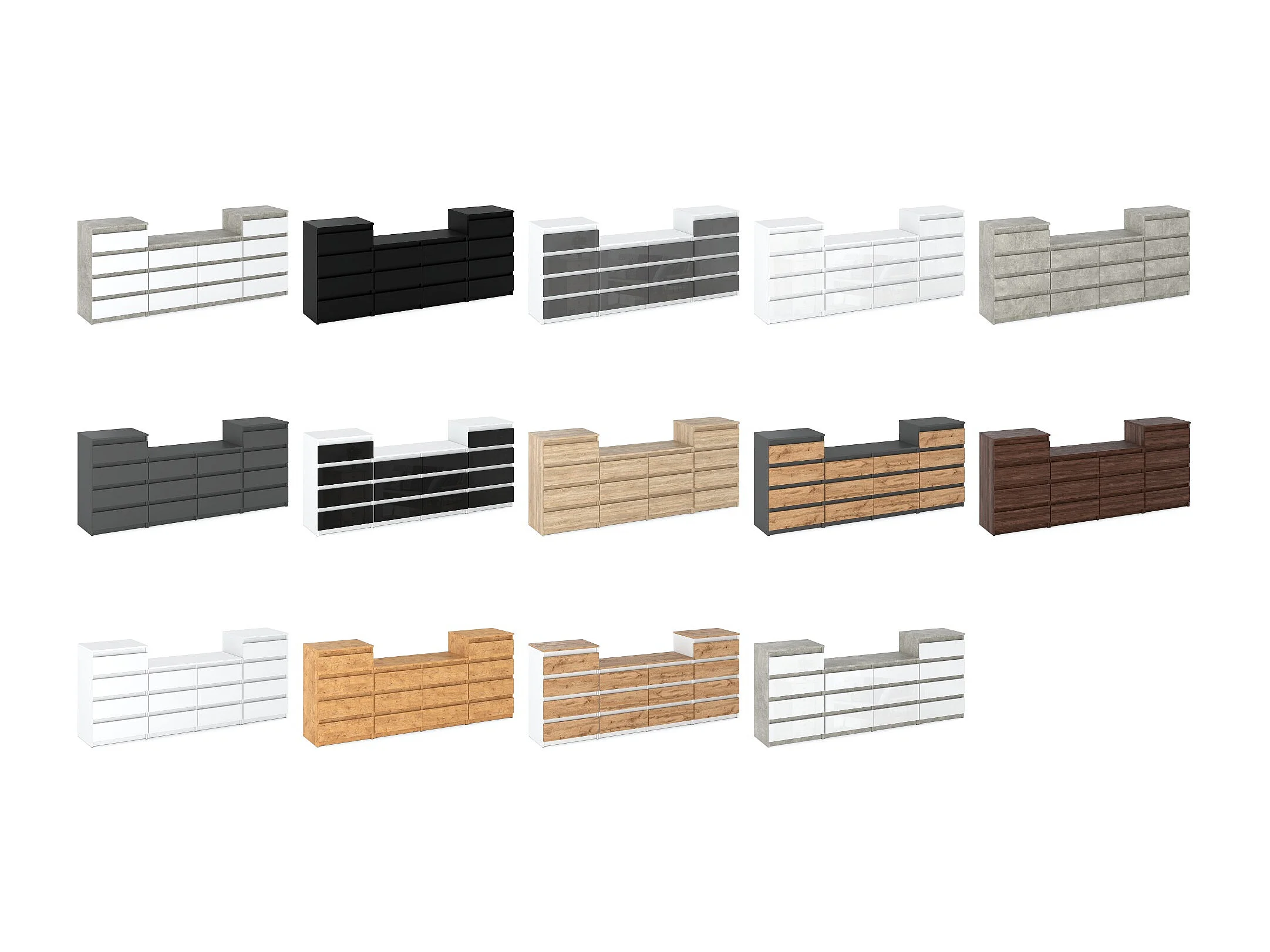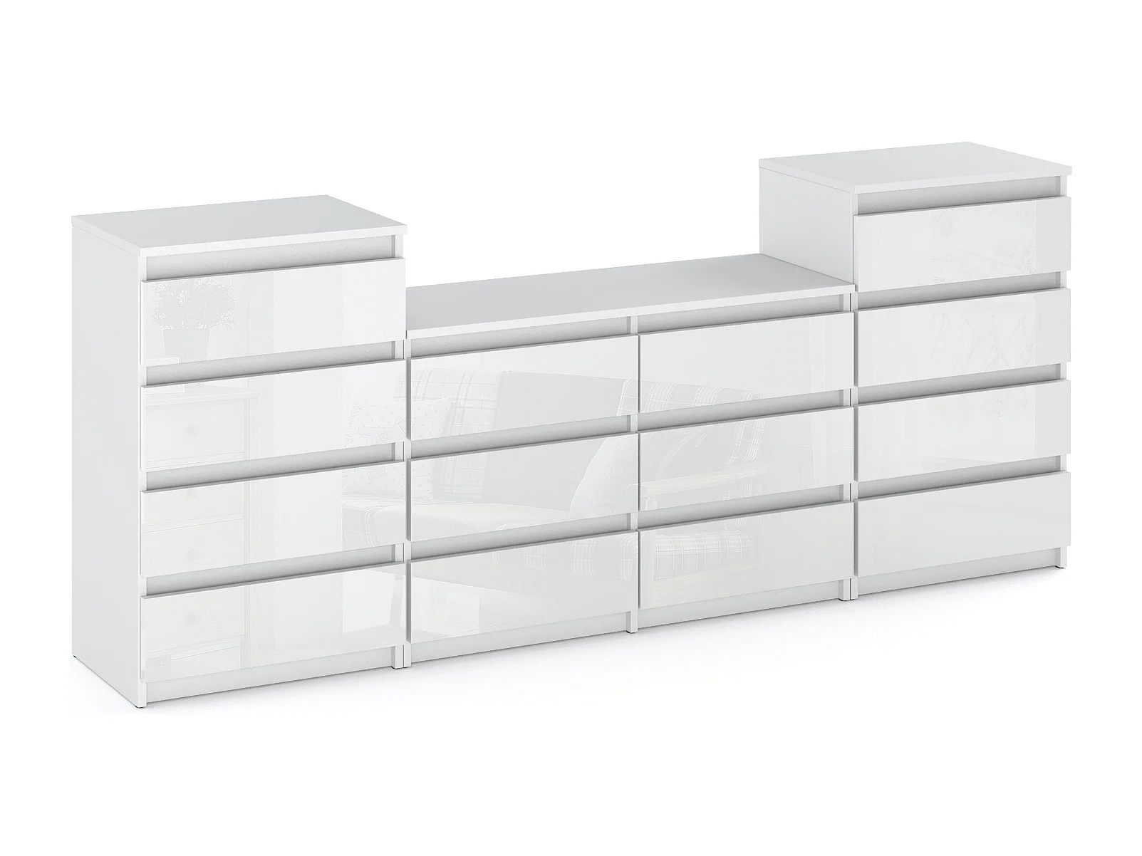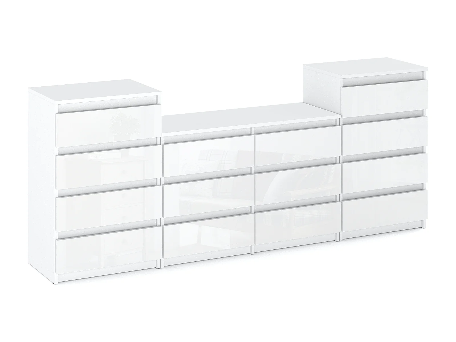Grande commode avec 14 tiroirs Blanc Brillant 220 cm – meuble TV, buffet, armoire pour salon