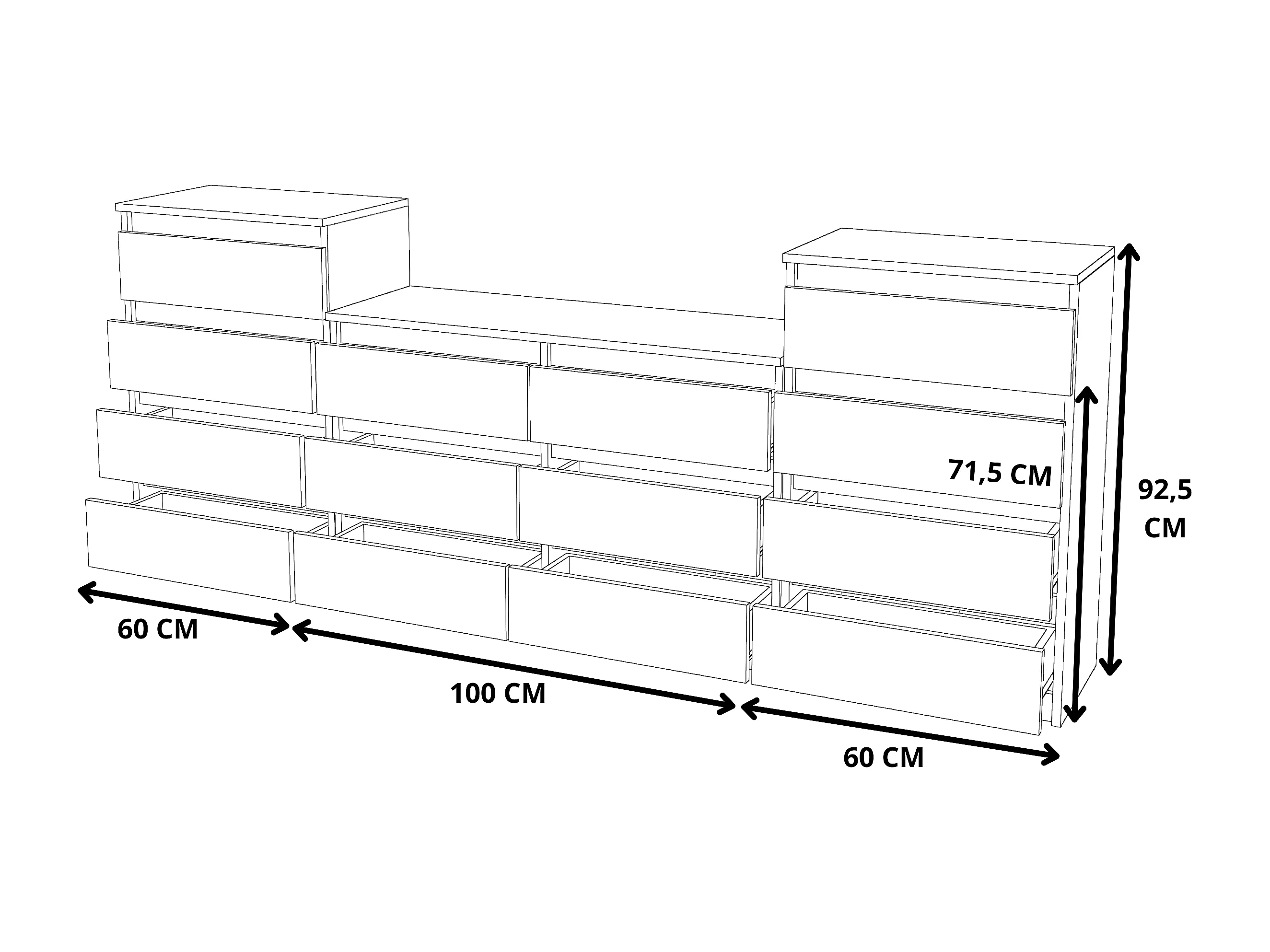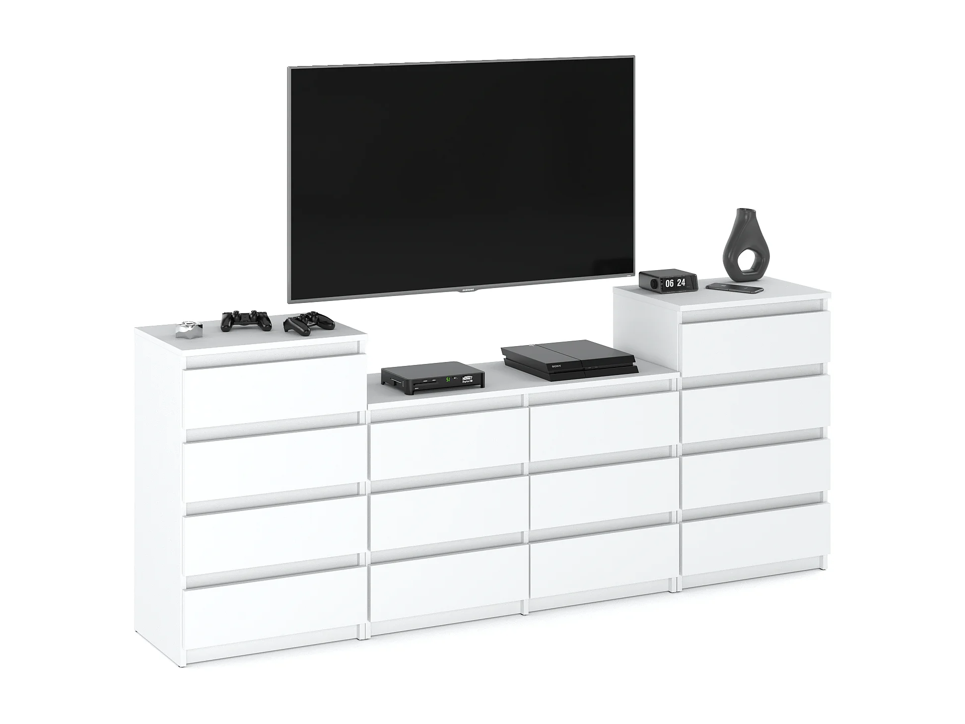 Grande commode avec 14 tiroirs Blanc Mat 220 cm – meuble TV, buffet, armoire pour salon
