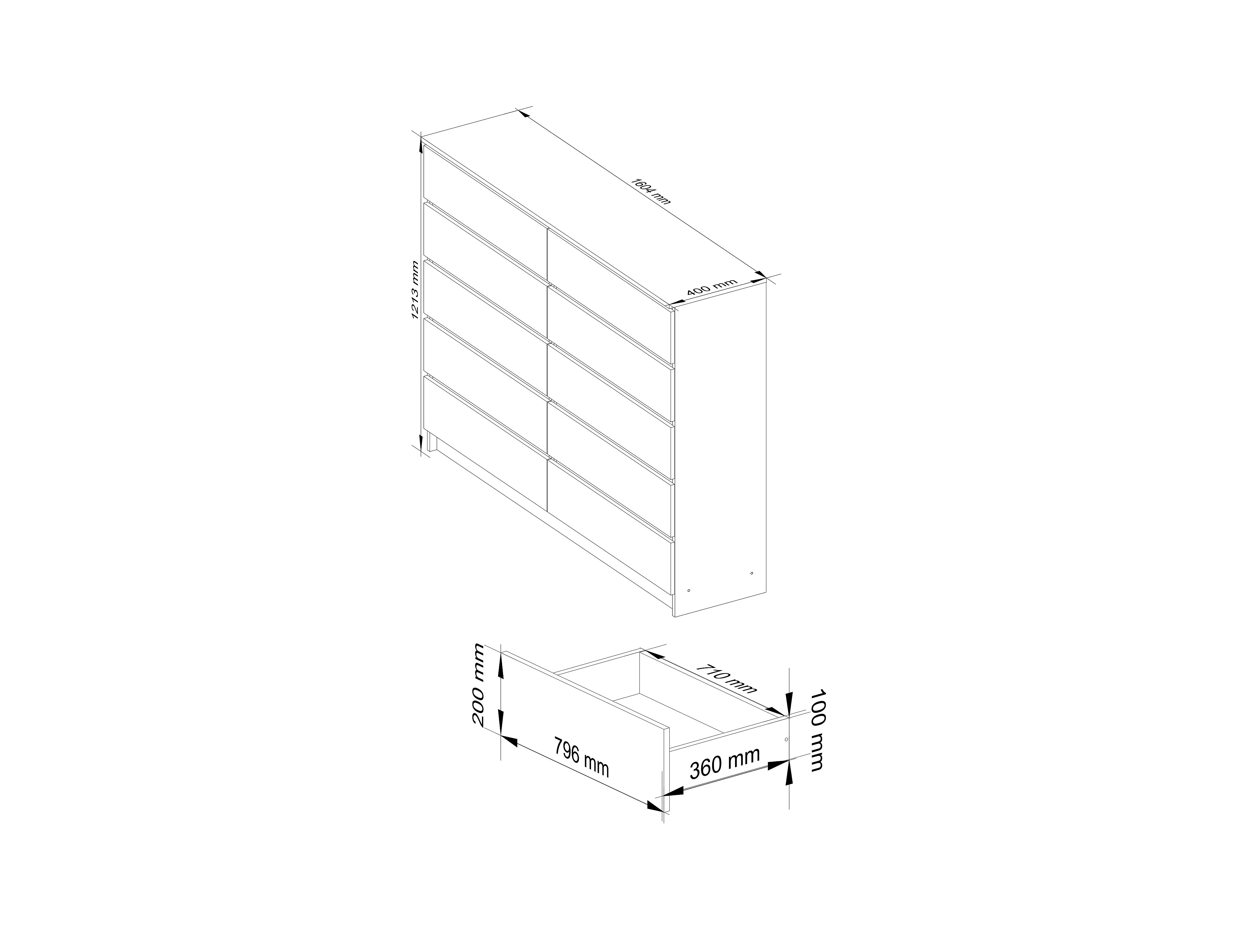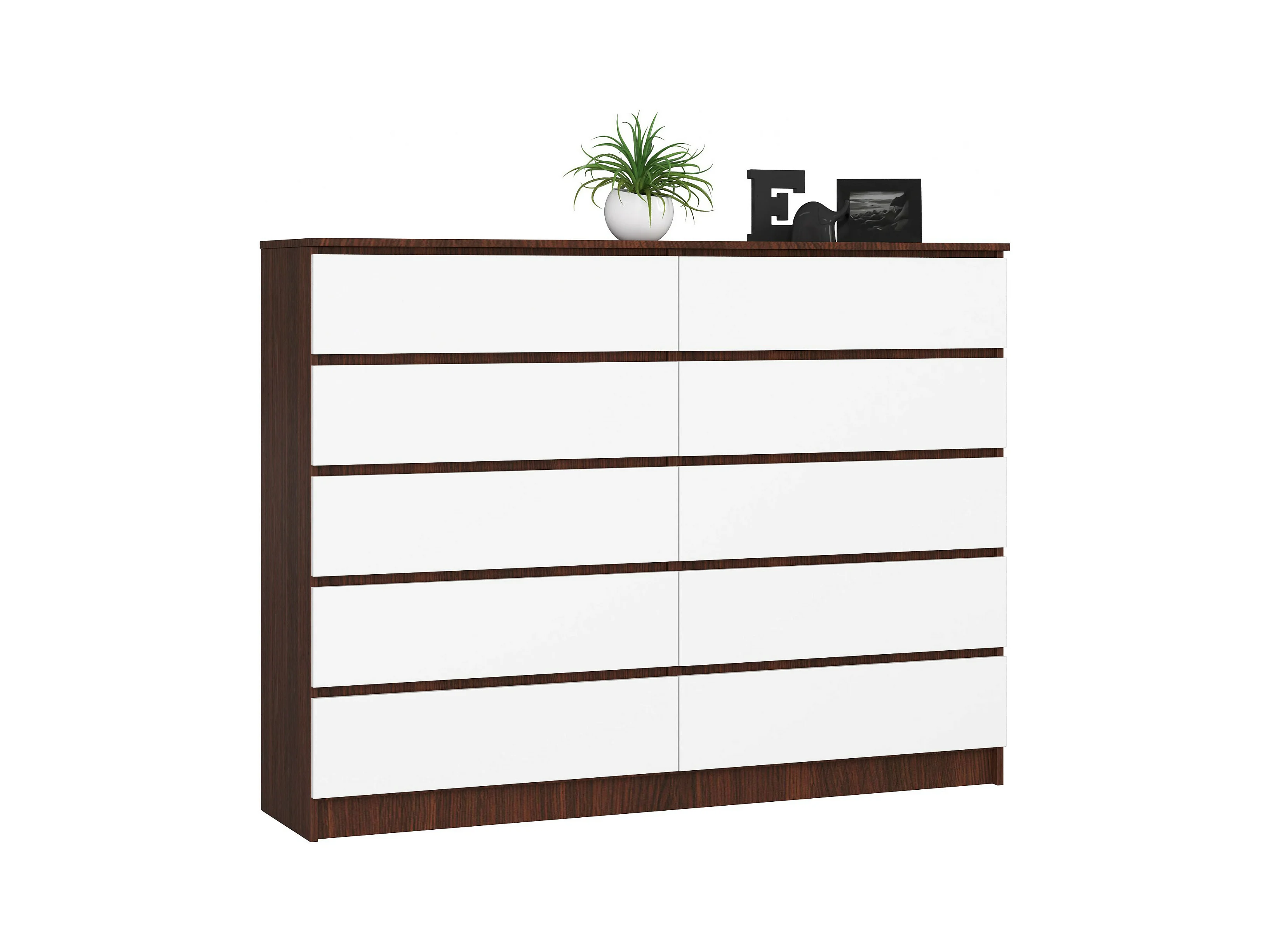 Grande Commode pour le salon AKORD K160 Wengé 160 cm 10 tiroirs façade Blanche 160x40x121 cm