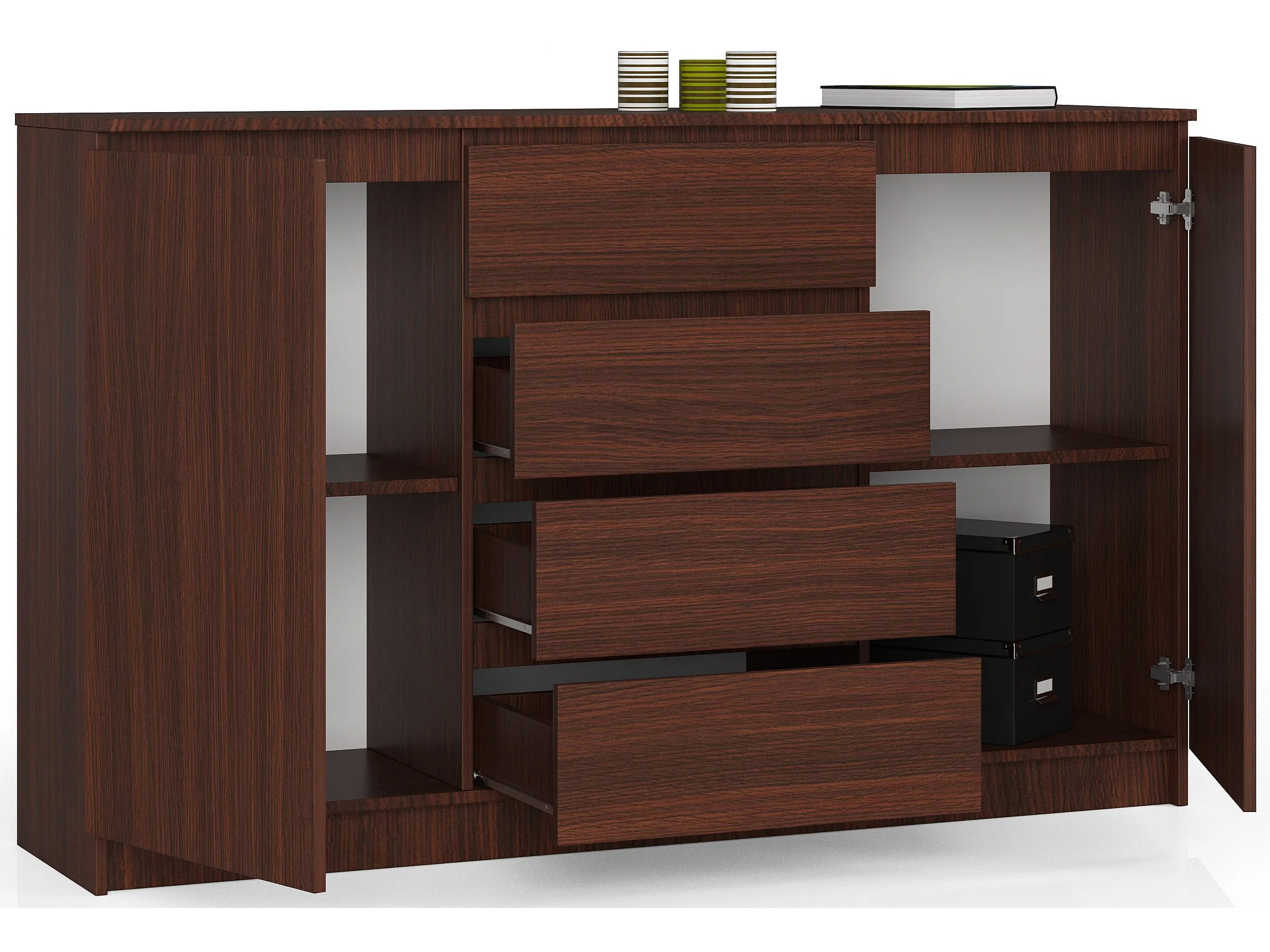 Grande Commode pour le salon AKORD K160 Wengé 160 cm 2 portes 4 tiroirs façade Wengé 4 étagères 160x40x99 cm