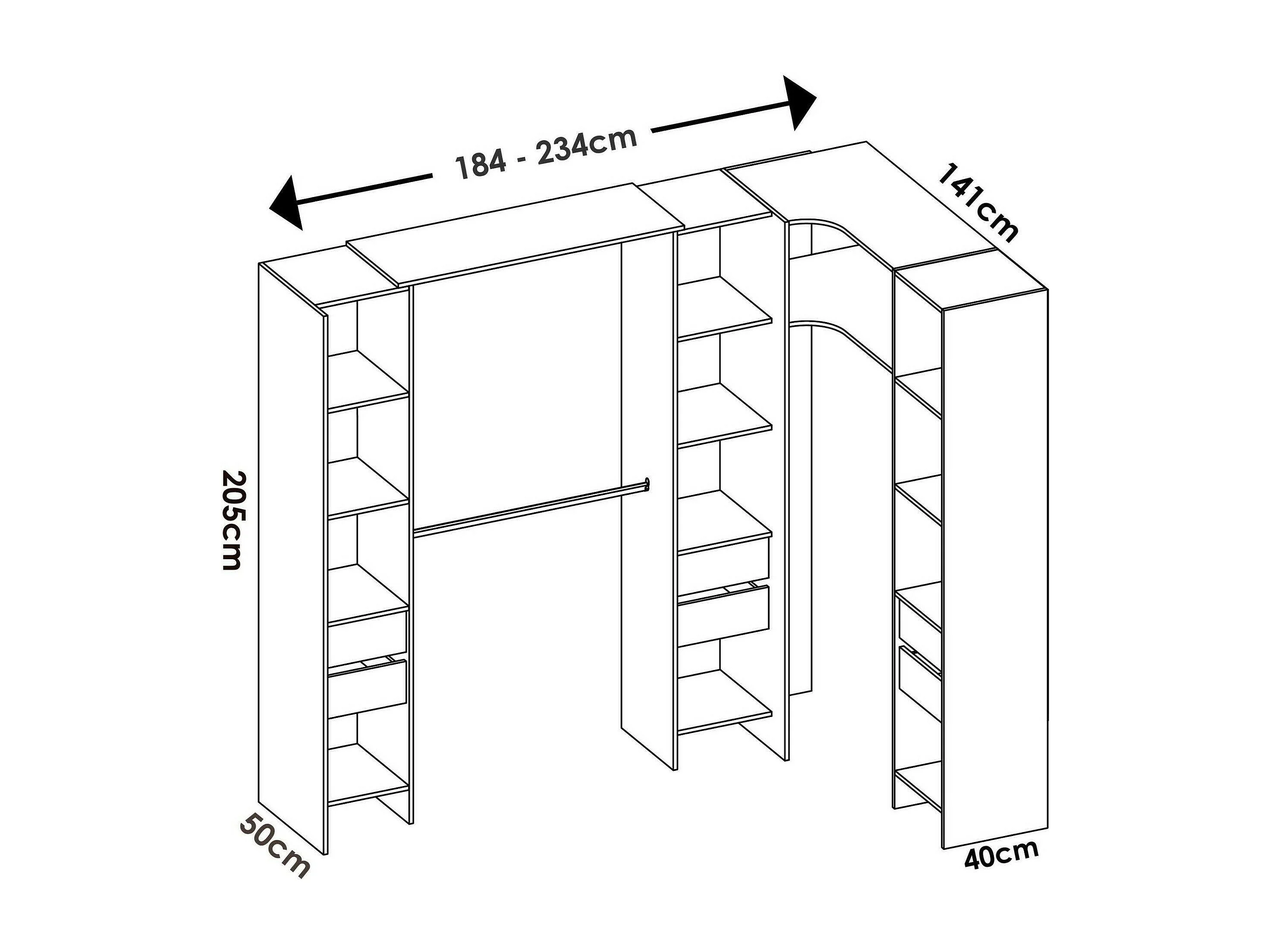 Grande Garde-robe Dharma, Meubles de chambre, Penderie de plain-pied, Placard à vêtements, 234x141 h205 cm, Blanc