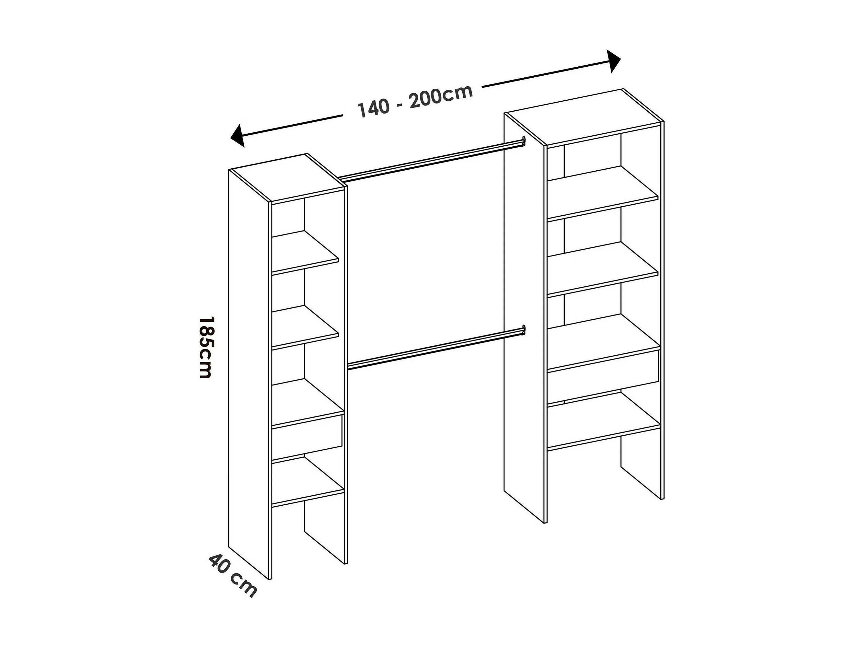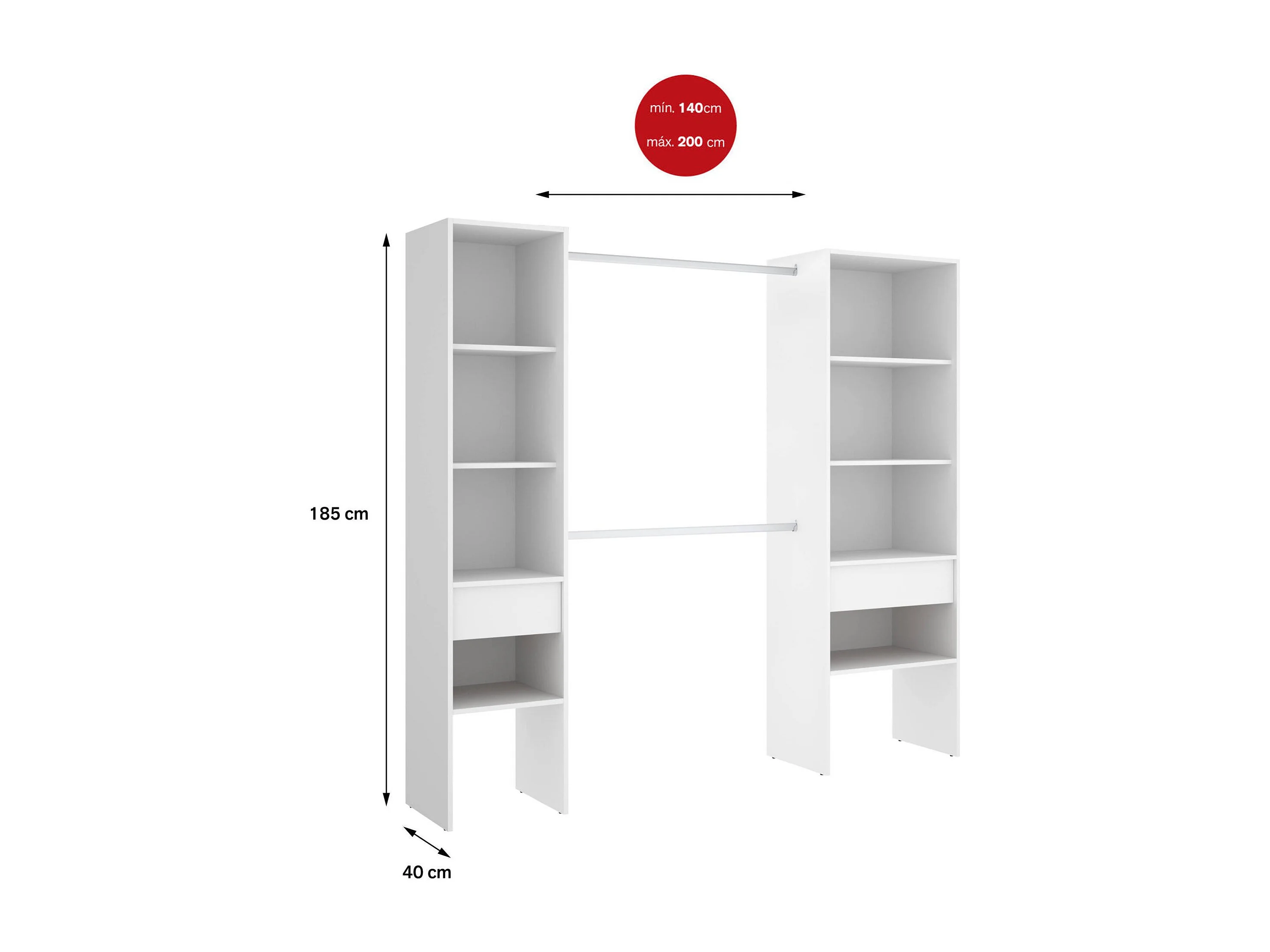 Grande Garde-robe Di, Meubles de chambre, Penderie de plain-pied, Placard à vêtements, 160x50 h185 cm, Blanc