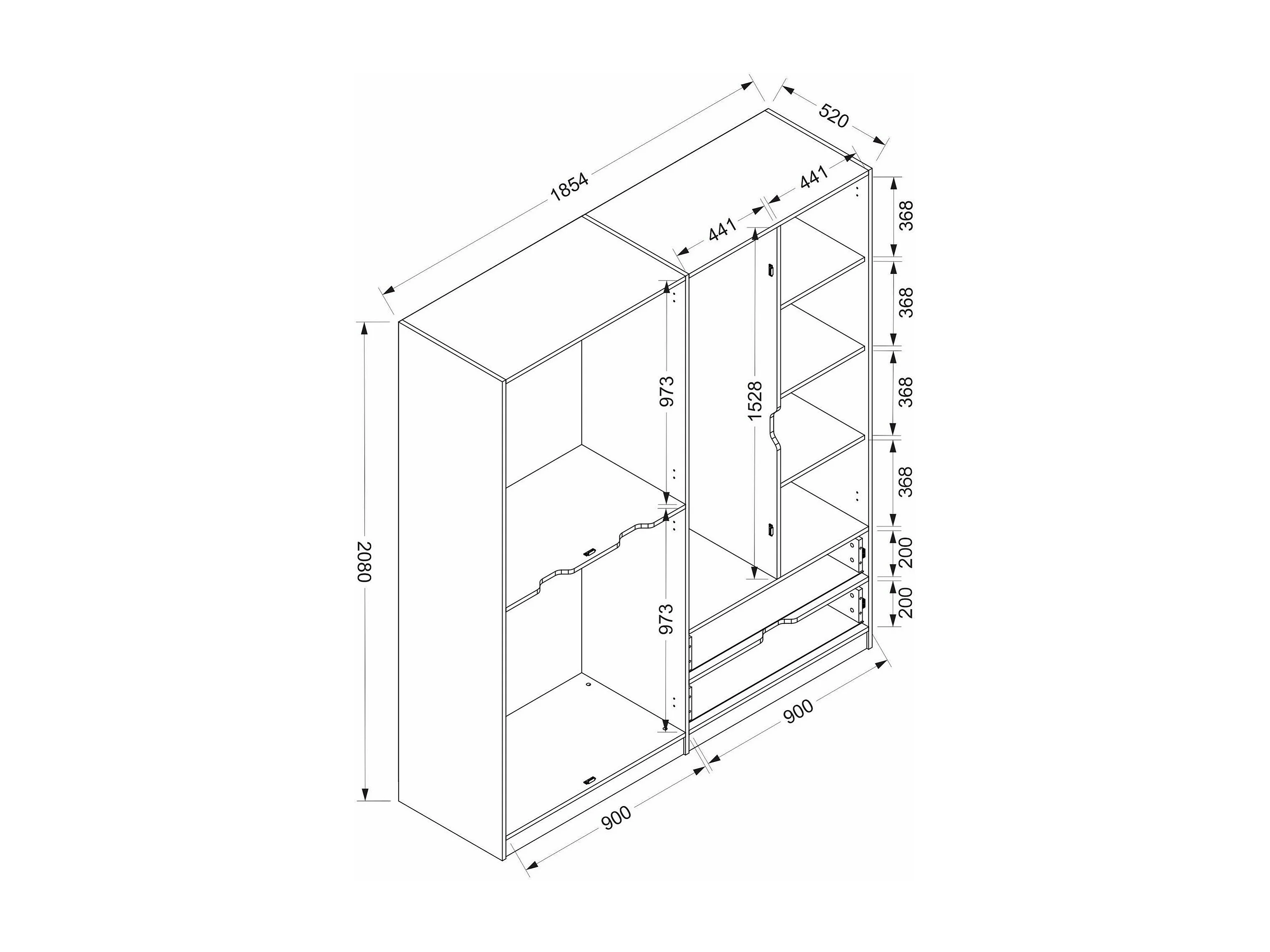 Grande Garde-robe Dmoussaman, Meubles de chambre, Penderie de plain-pied, Placard à vêtements, 185x52 h208 cm, Blanc et Or