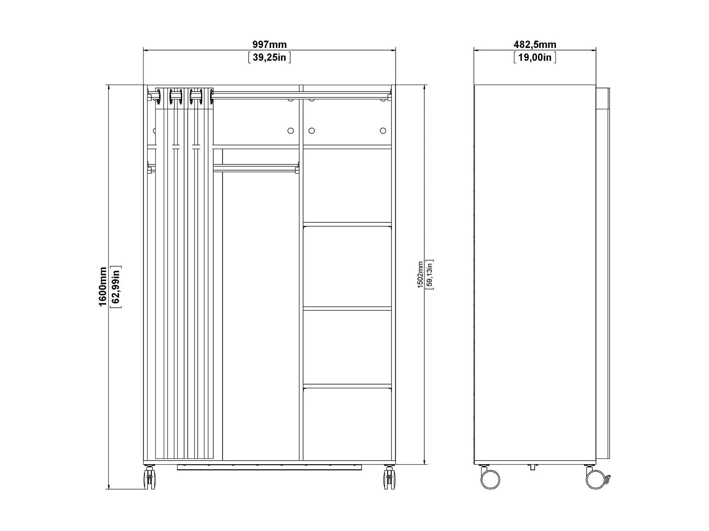 Grande Garde-robe Dsesi, Meubles de chambre, Penderie de plain-pied, Placard à vêtements, 100x48 h160 cm, Blanc