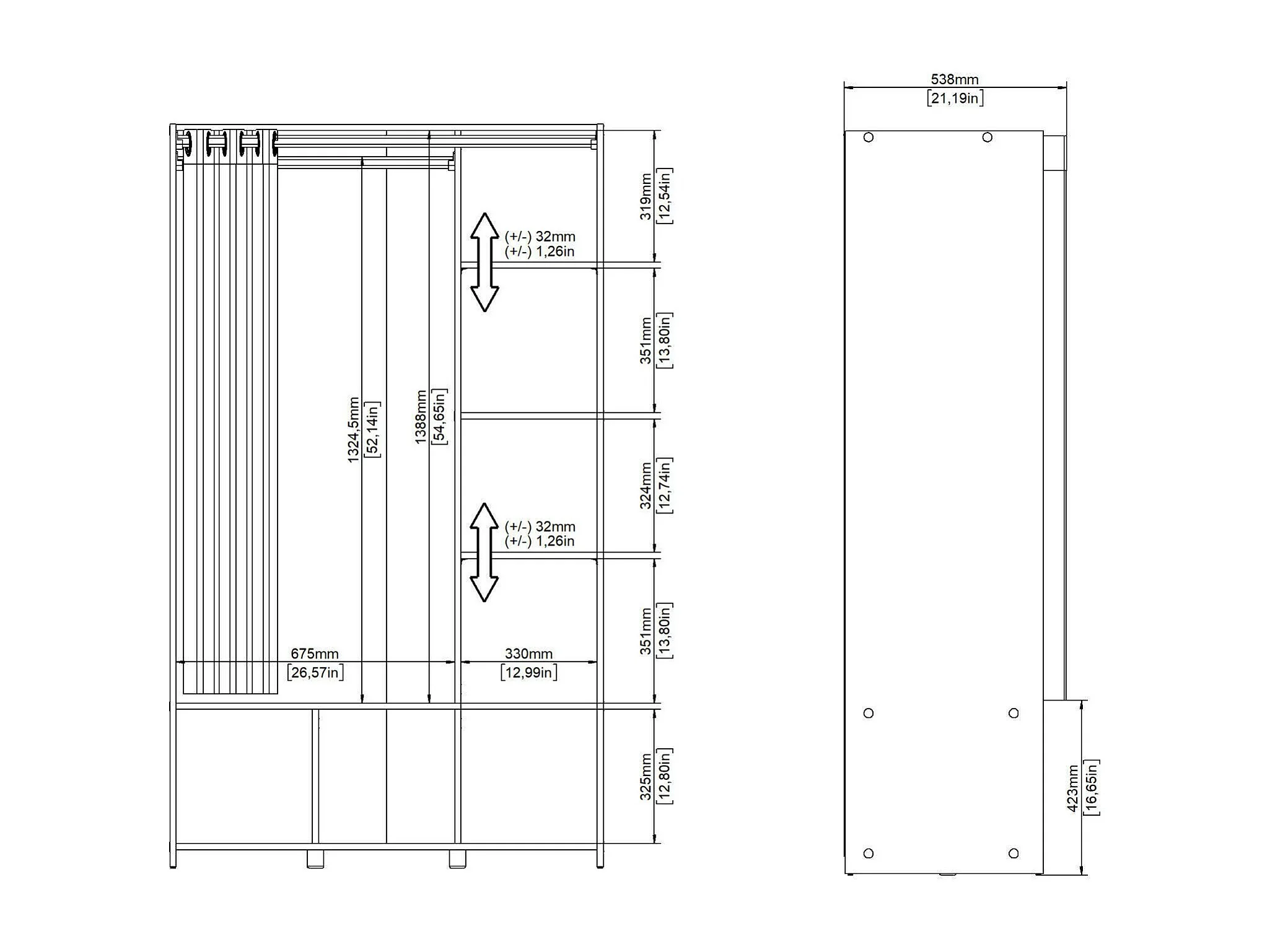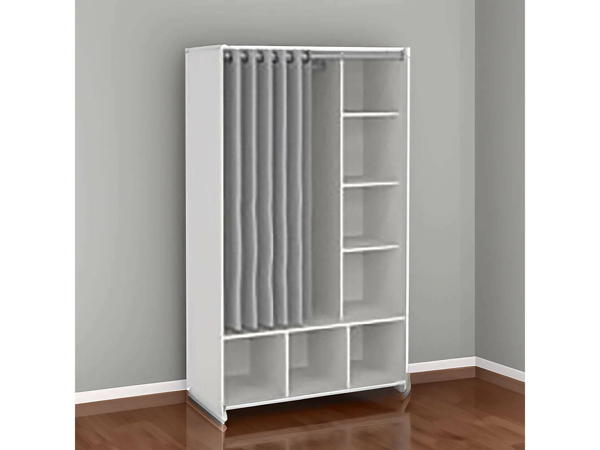 Grande Garde-robe Dseverin, Meubles de chambre, Penderie de plain-pied, Placard à vêtements, 105x48 h180 cm, Blanc et gris