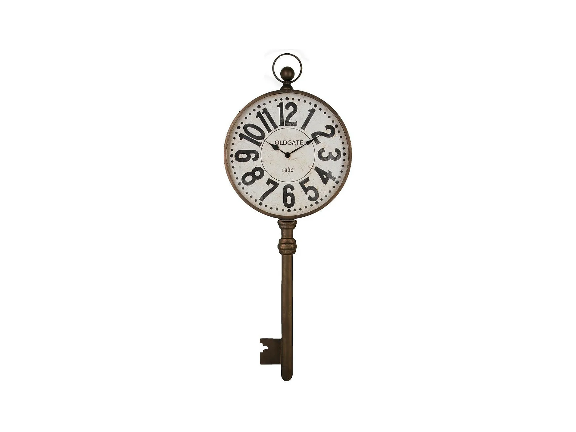 Grande Pendule murale forme Clef en métal 40 x 100 cm