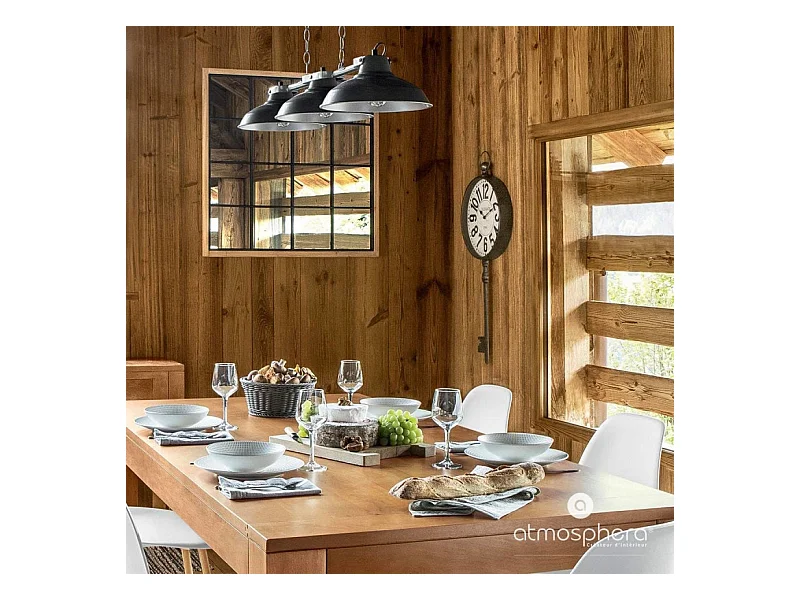 Lampadaire Pied en Bois et Abat-jour en métal Noir H 158 cm