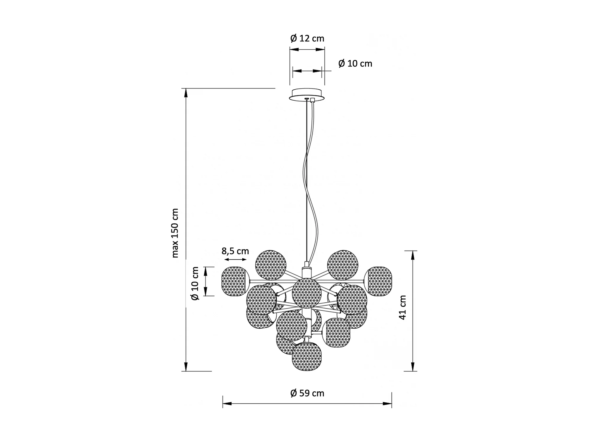 Grande suspension à 16 verres texturés fumés noirs - Anastasia