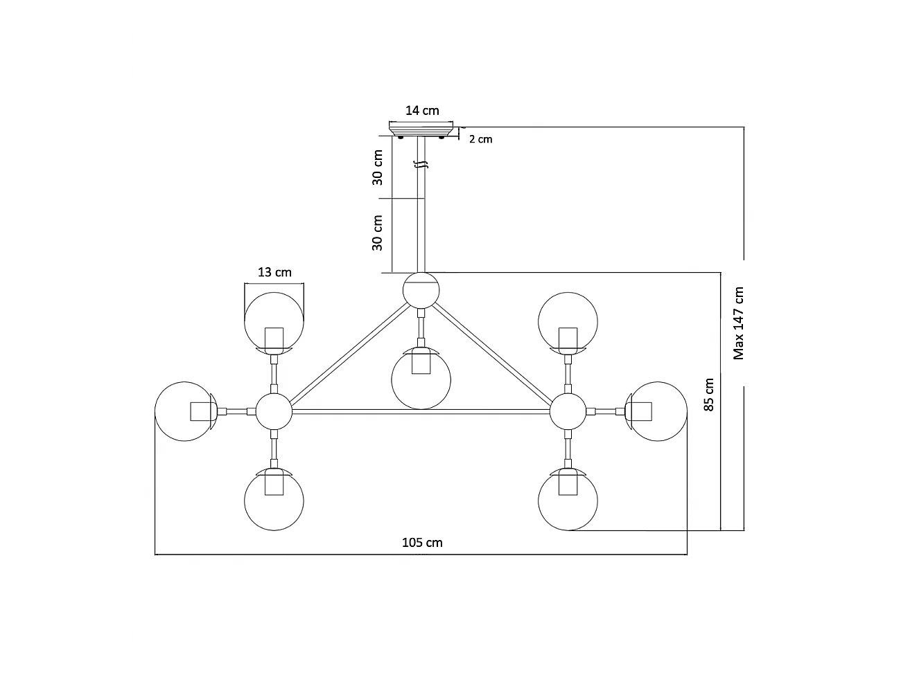 Grande suspension dorée à 12 sphères - Carolyn