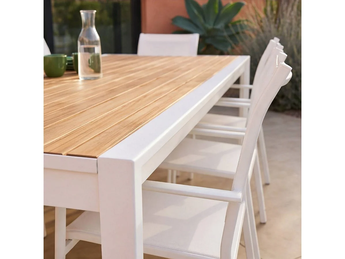 Grande table de jardin en aluminium blanc et effet bois Ayden