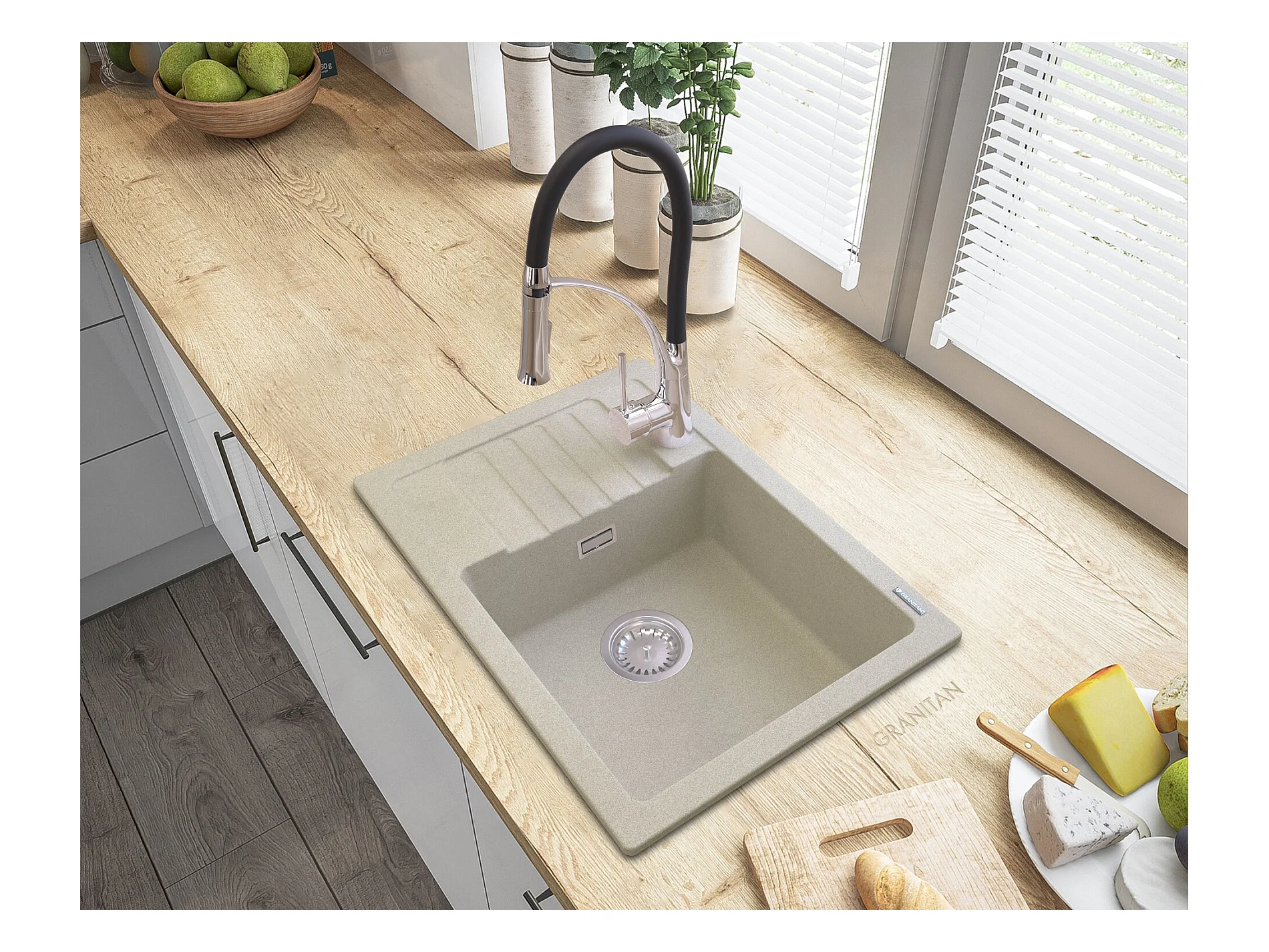 GRANIT BEIGE ÉVIER ARGOS + MITIGEUR NEXO + SIPHON