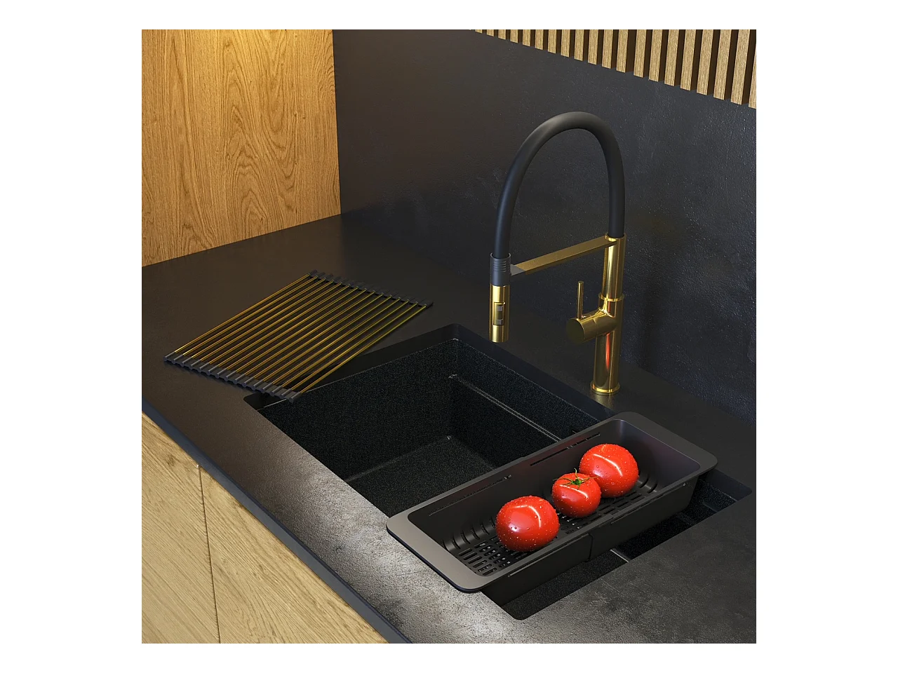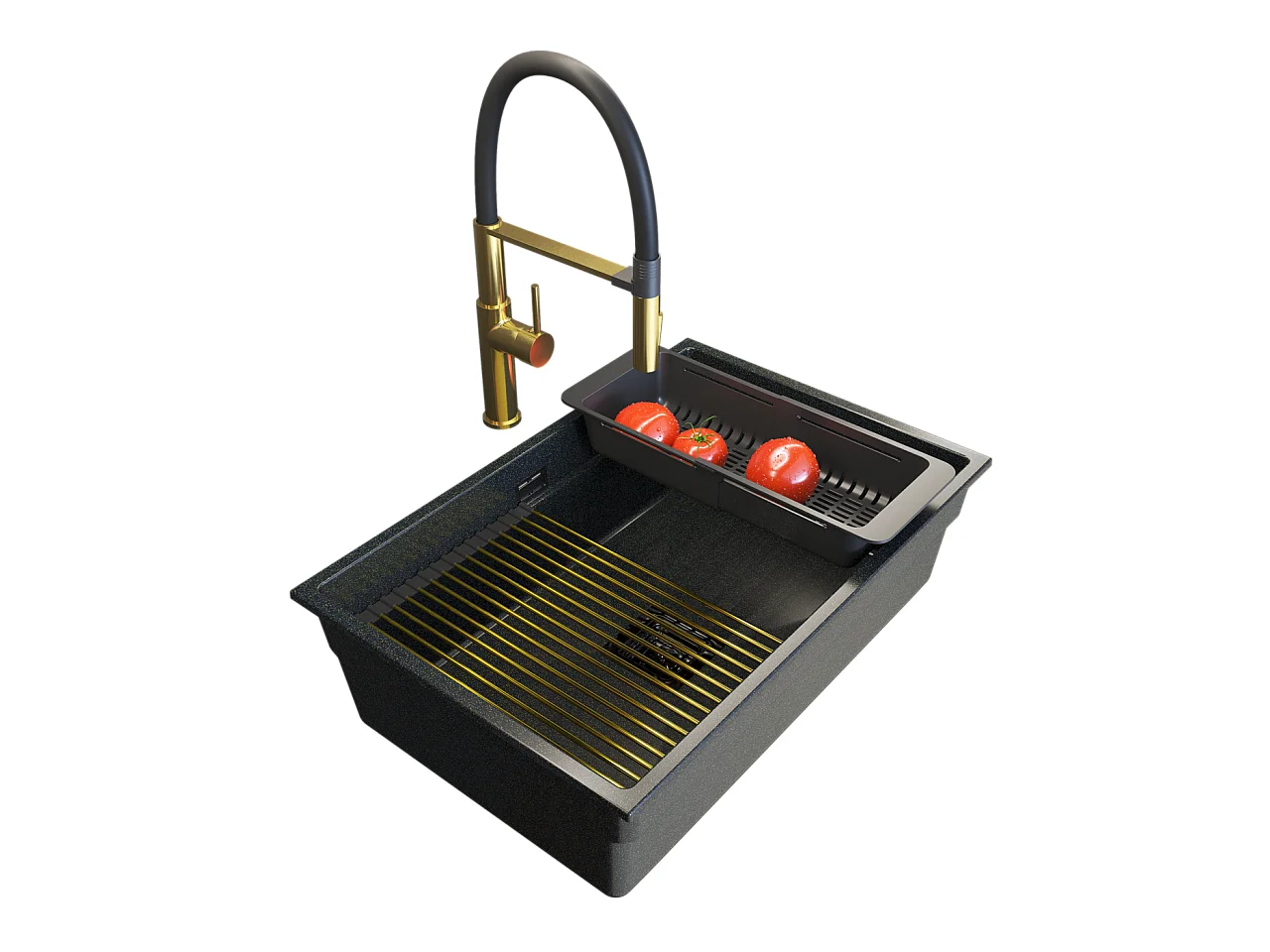 GRANIT ÉVIER SOUS PLAN NOIR OR MITIGEUR SIPHON EPIR 70