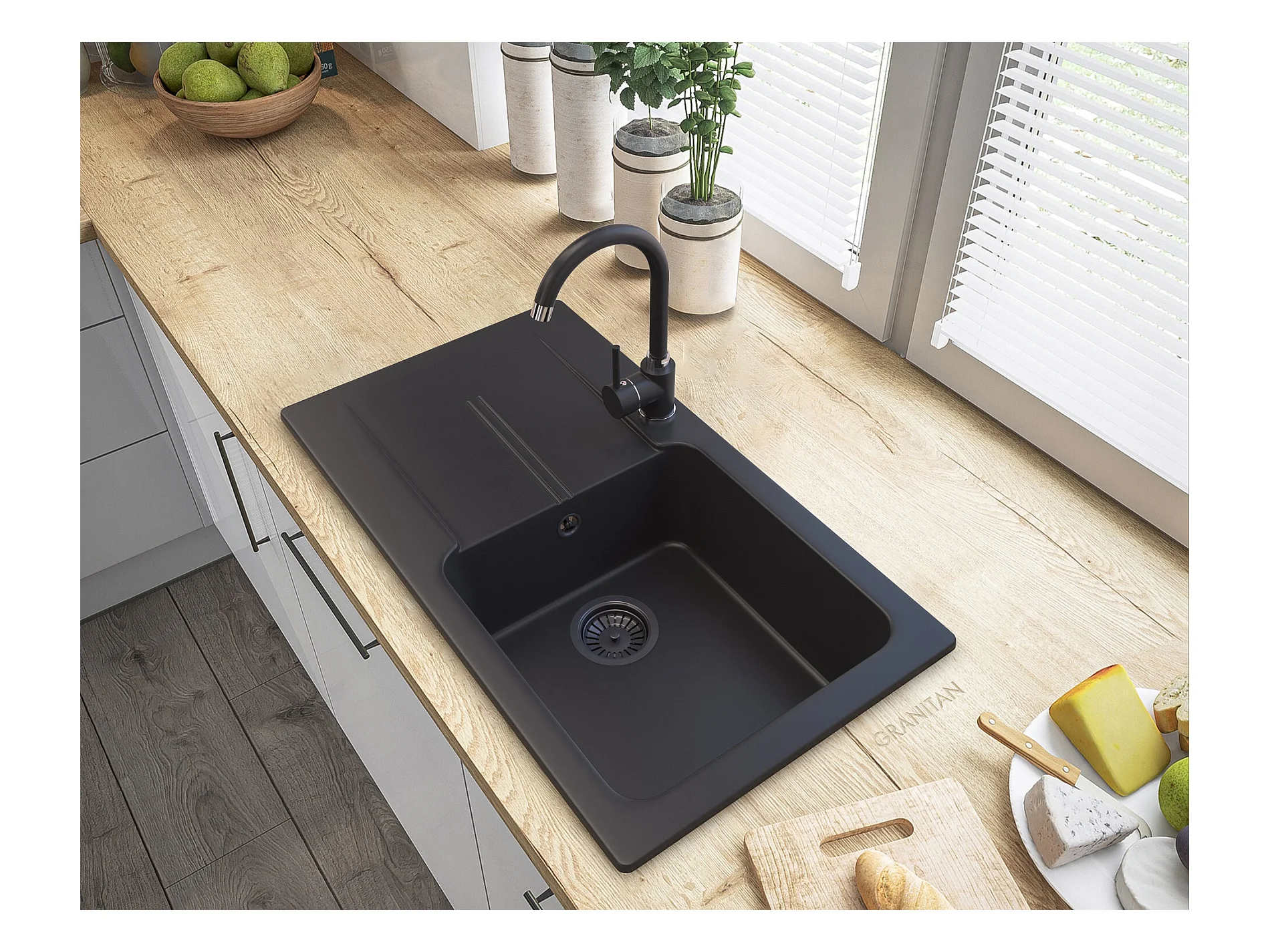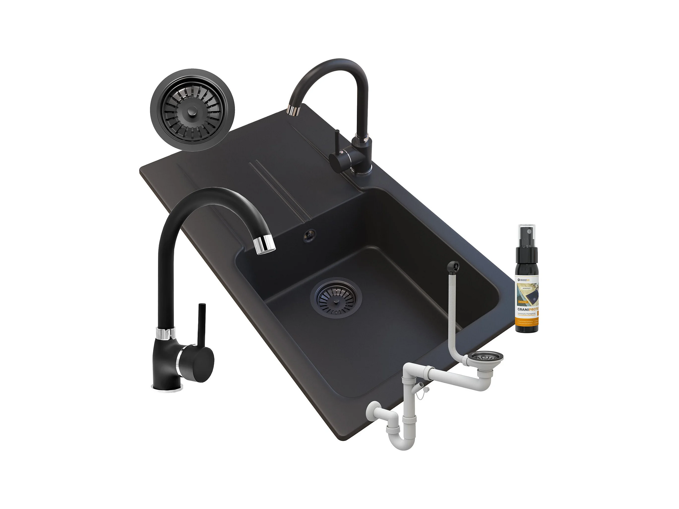 GRANIT NOIR ÉVIER TASOS + MITIGEUR BETA + SIPHON