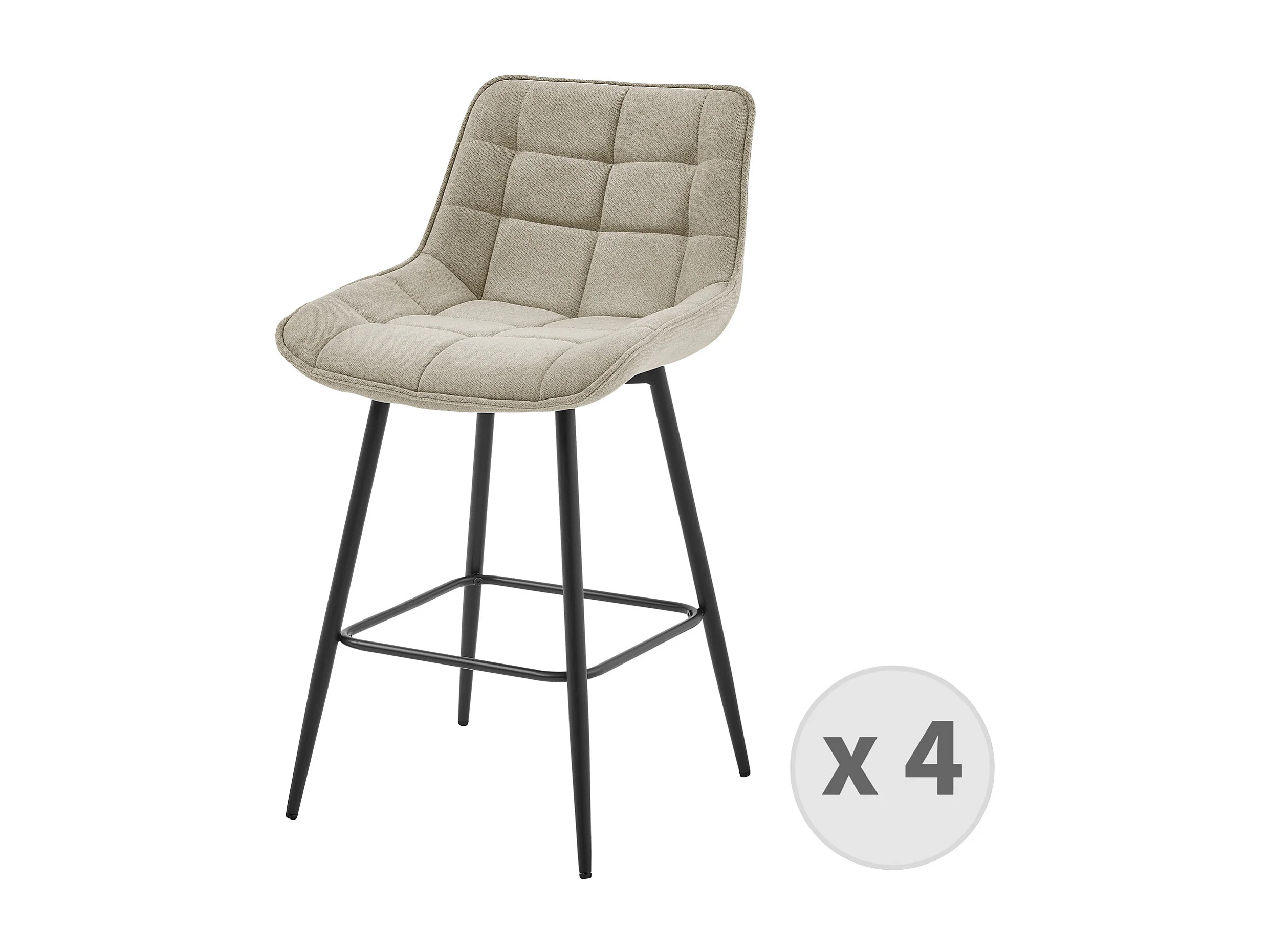 GRANT-Tabouret de bar en tissu Coloris Lin et métal noir (x4)