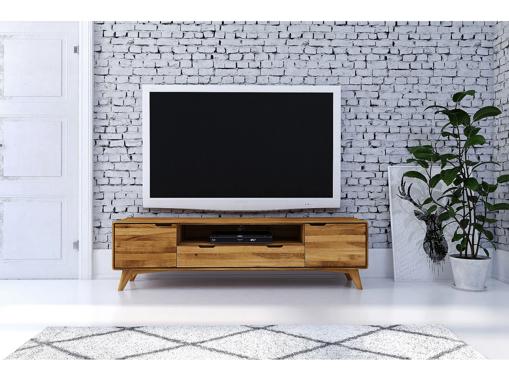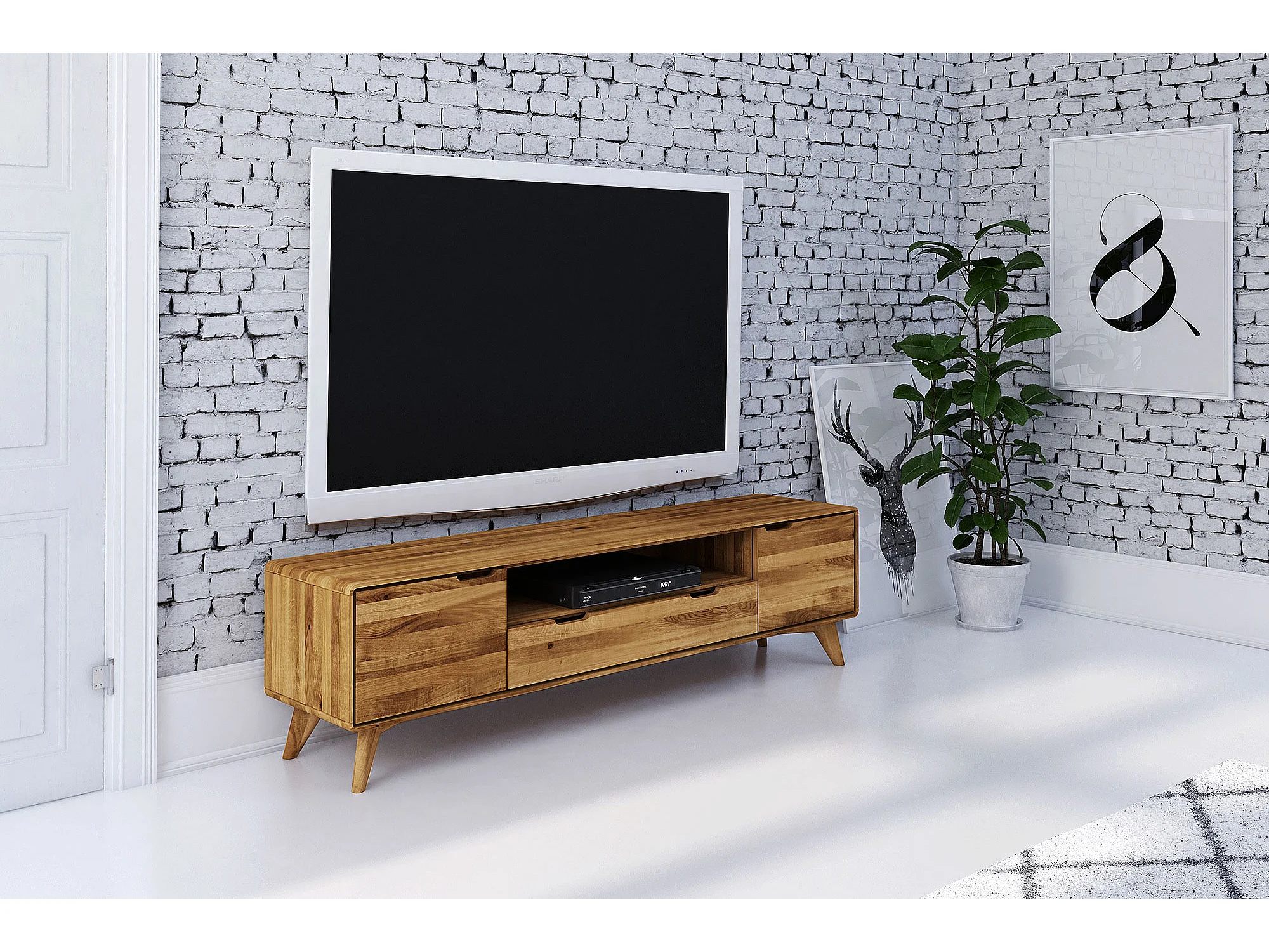 GREG - Meuble TV avec tiroir en chêne sauvage huilé naturel