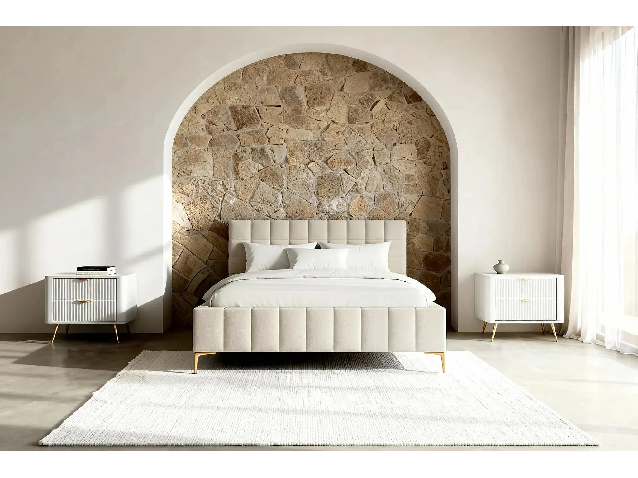 GREGOIRE - Lit coffre tissu chiné 140x200cm - Beige