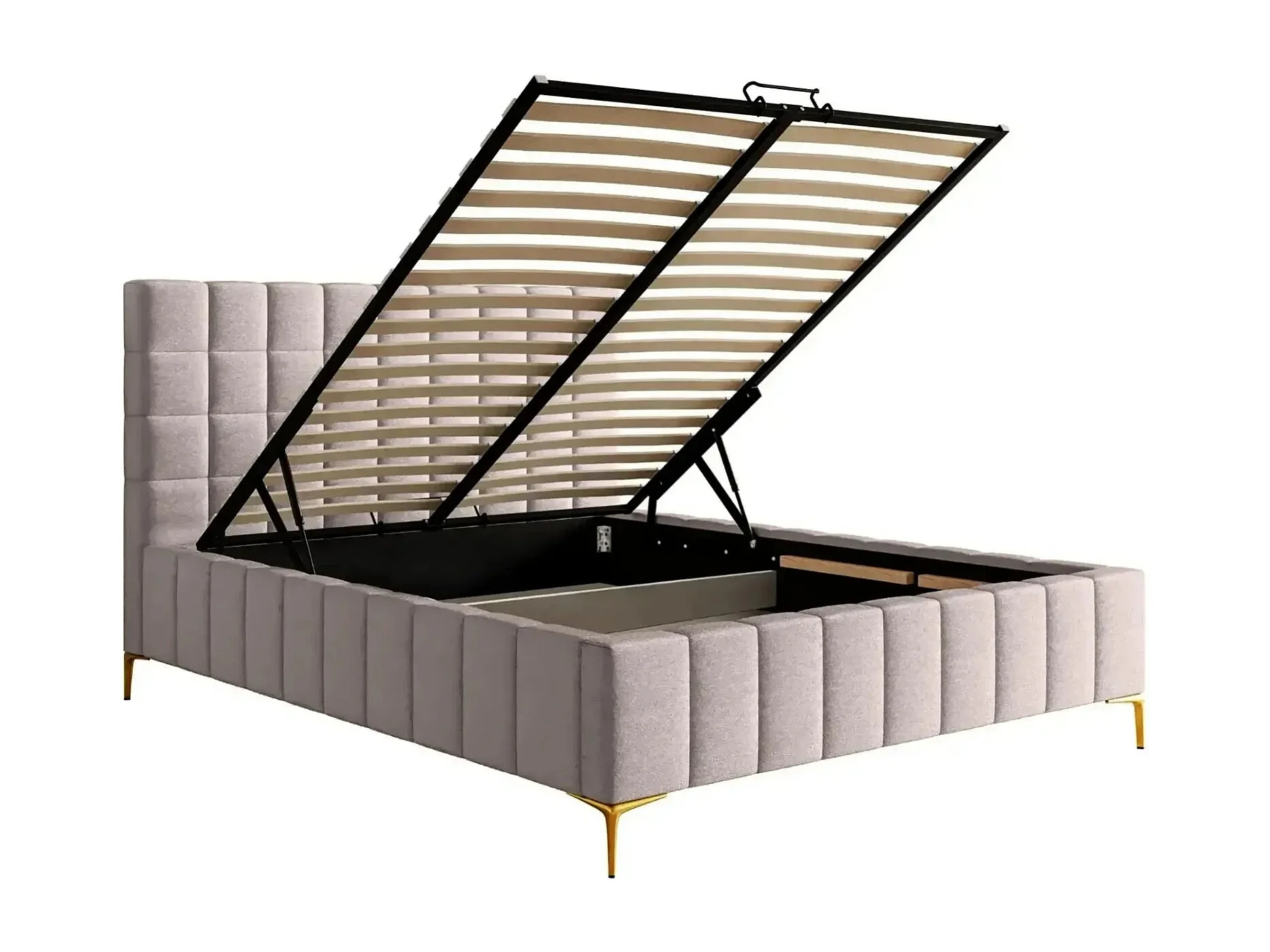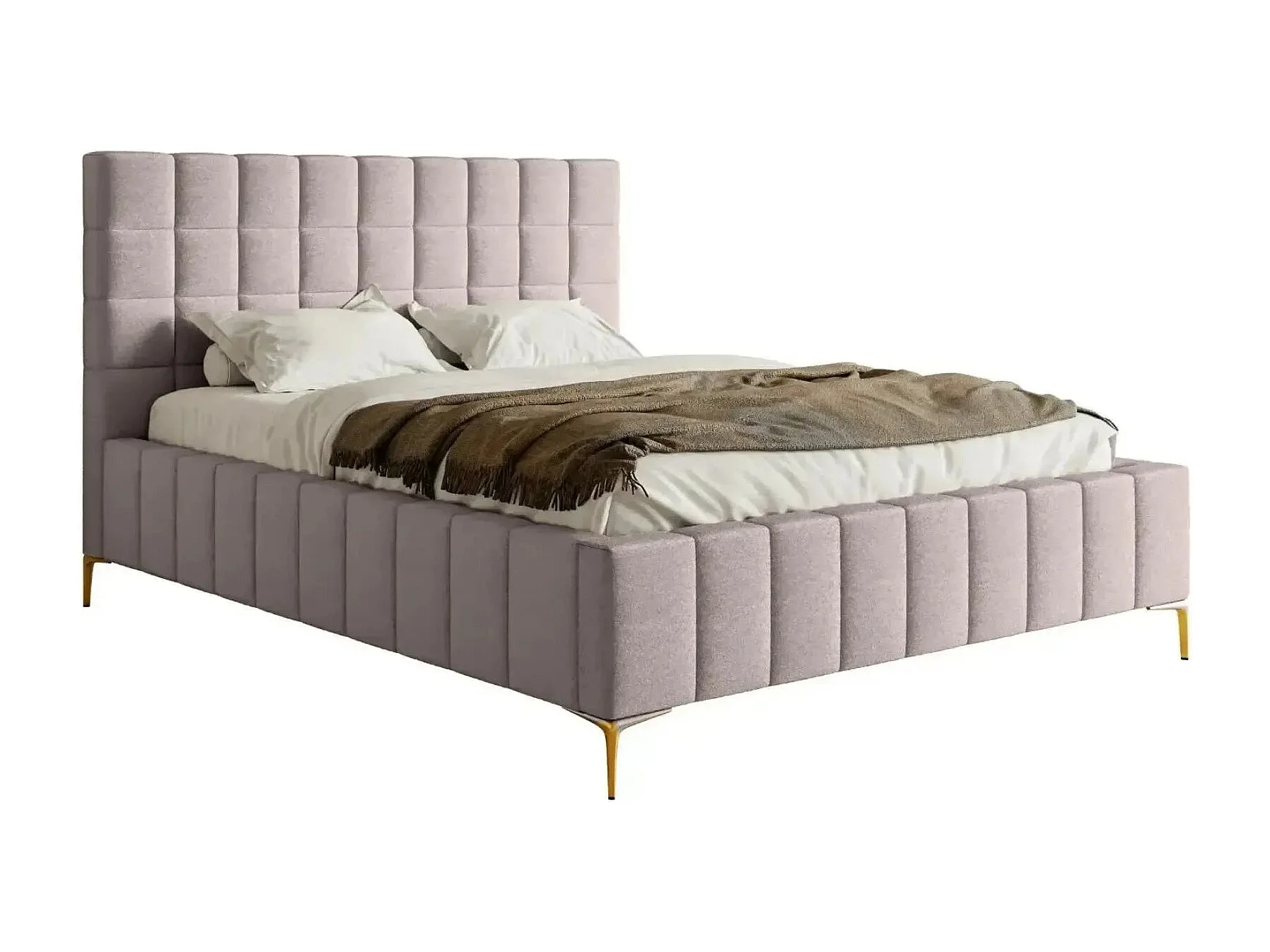 GREGOIRE - Lit coffre tissu chiné 140x200cm - Rose