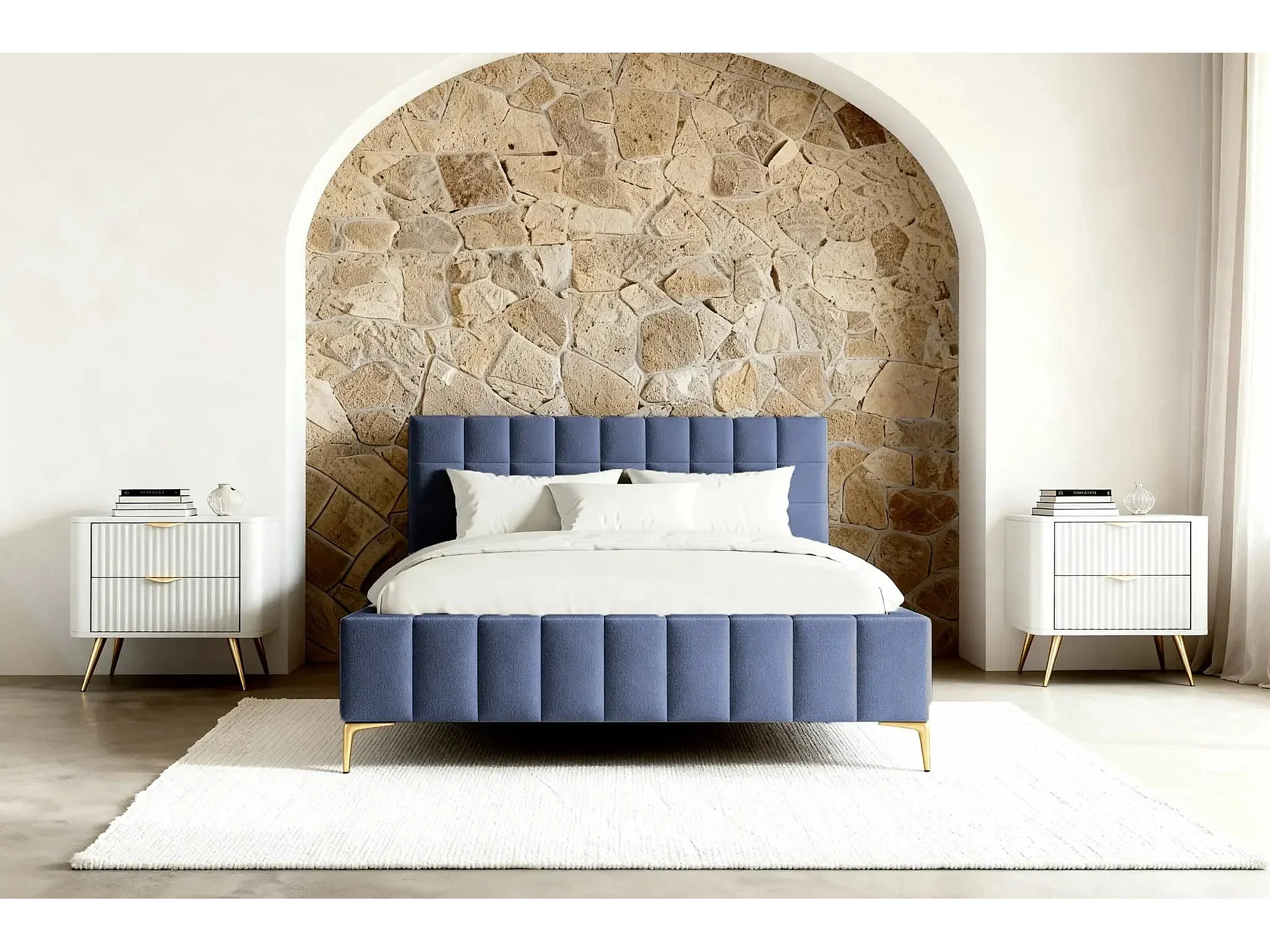 GREGOIRE - Lit coffre tissu chiné 160x200cm - Bleu