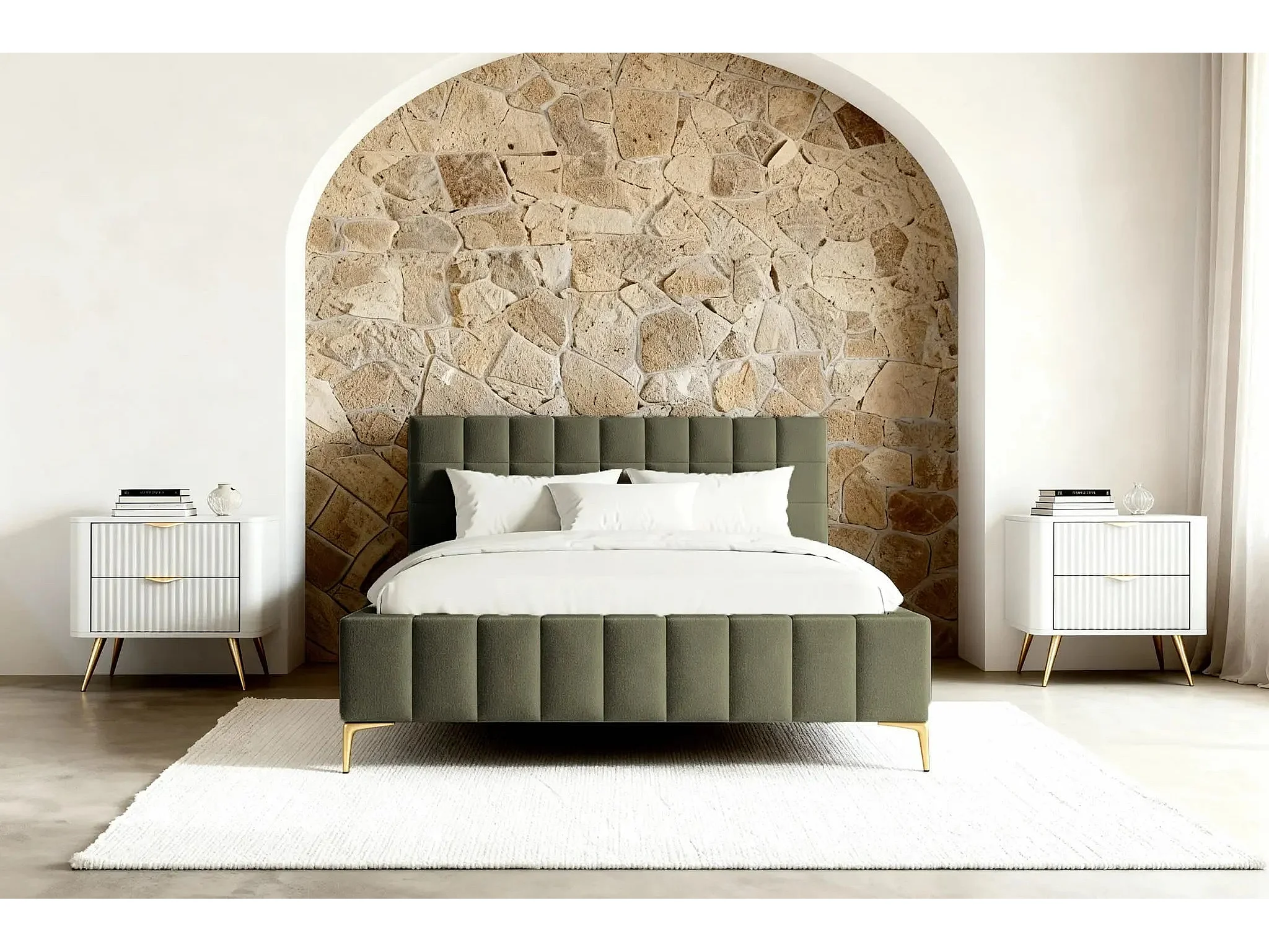 GREGOIRE - Lit coffre tissu chiné 180x200cm - Vert